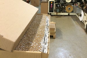 Przeszukania przeprowadzone w kolejnych pomieszczeniach pozwoliły na zabezpieczenie ogromnych ilości półproduktów służących do produkcji papierosów, m.in. gilz, filtrów, klejów i podrobionych opakowań.