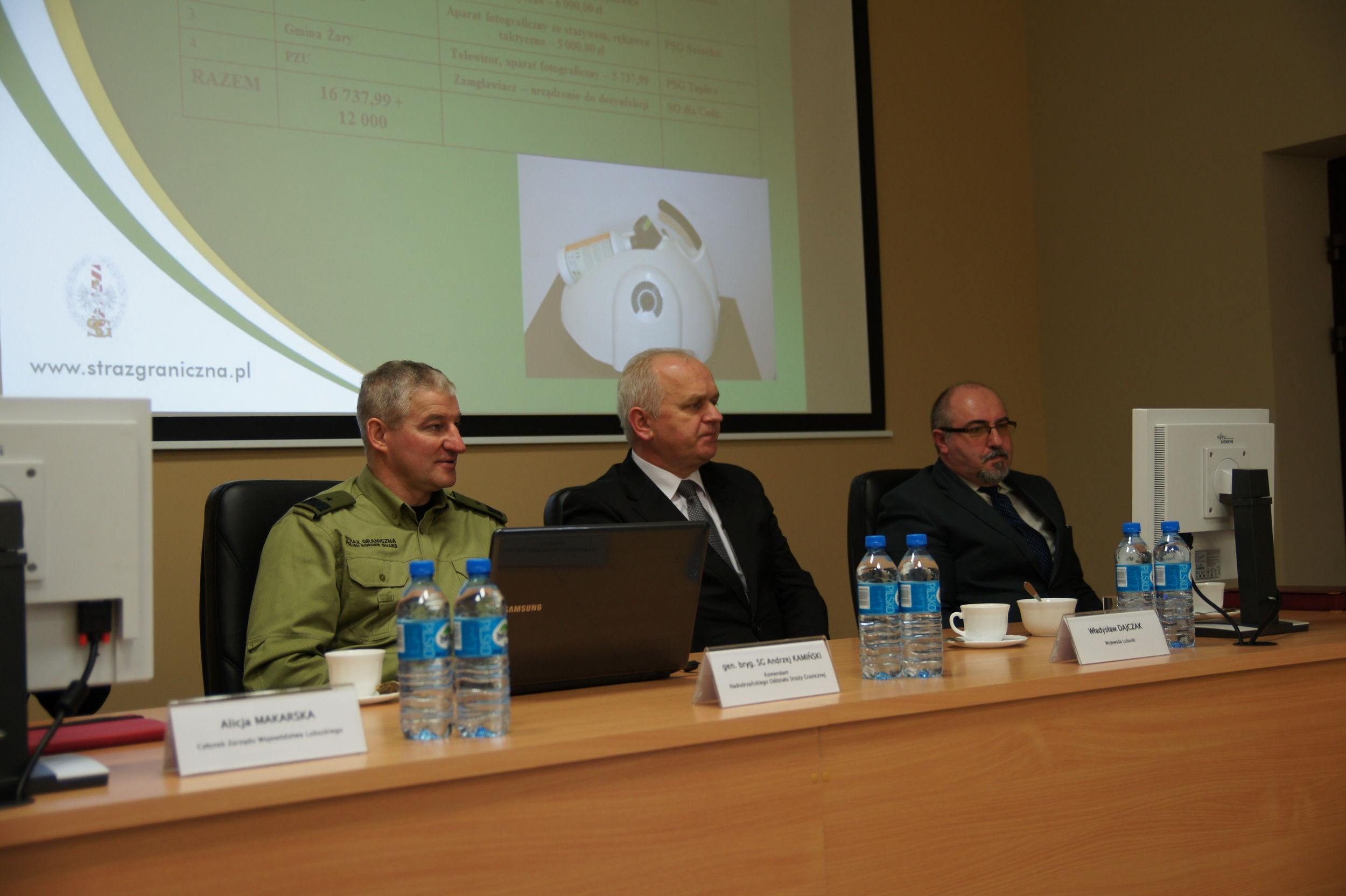 Odprawę rozpoczął Komendant Nadodrzańskiego Oddziału SG gen. bryg. SG Andrzej Kamiński, który podziękował przybyłym gościom za wspólne działania i podkreślił, jak ważna, a wręcz konieczna, jest współpraca w obecnej rzeczywistości. Gen. bryg. SG Andrzej Kamiński podziękował także wojewodzie za zaangażowanie w działania mające na celu poprawę bezpieczeństwa w regionie, a także za wspólną realizację działań w ramach projektu „Lubuski alians służb mundurowych i cywilnych wobec handlu ludźmi i przestępczości transgranicznej”. Podziękowania zostały skierowane również pani Alicji Makarskiej, członka Zarządu Województwa Lubuskiego, za wsparcie realizowanego przez oddział projektu modernizacji Portu Lotniczego w Zielonej Górze-Babimoście. Dzięki dofinansowaniu ze środków Lubuskiego Regionalnego Programu Operacyjnego zakupiony został na rzecz Placówki SG w Zielonej Górze – Babimoście specjalistyczny sprzęt pirotechniczny.
