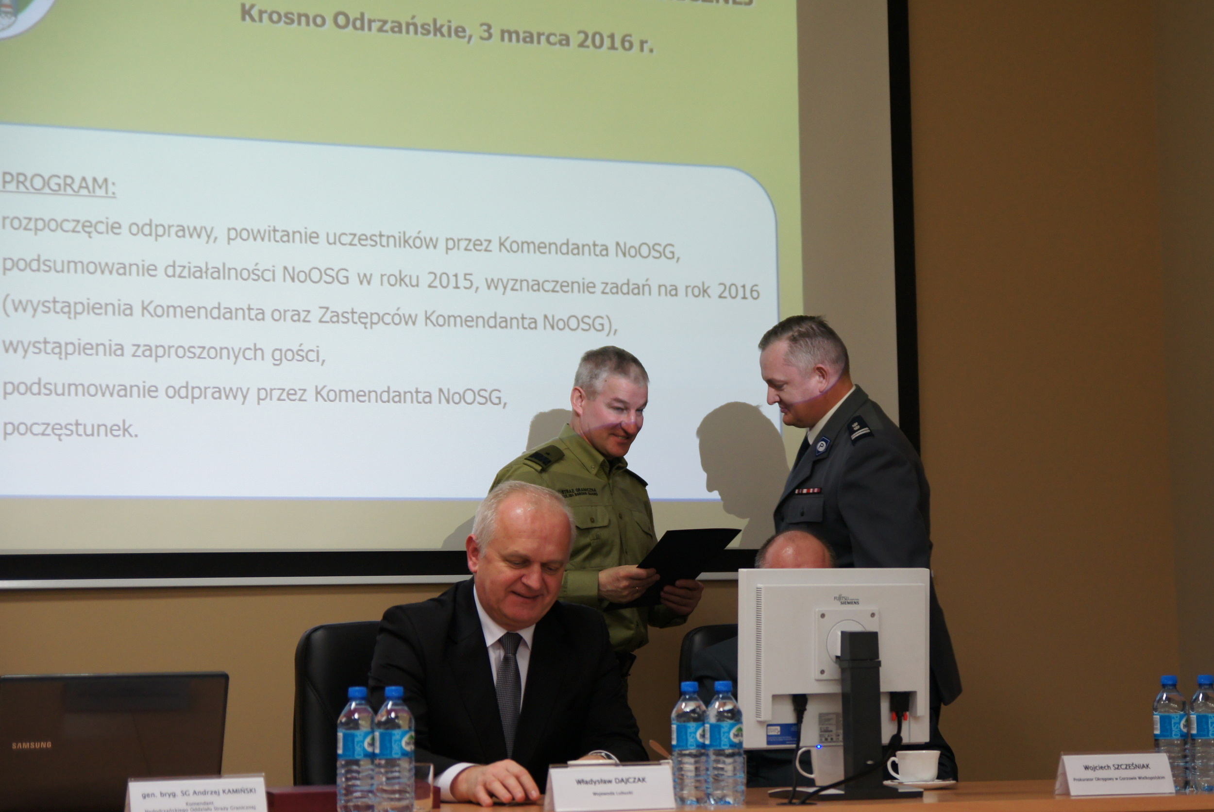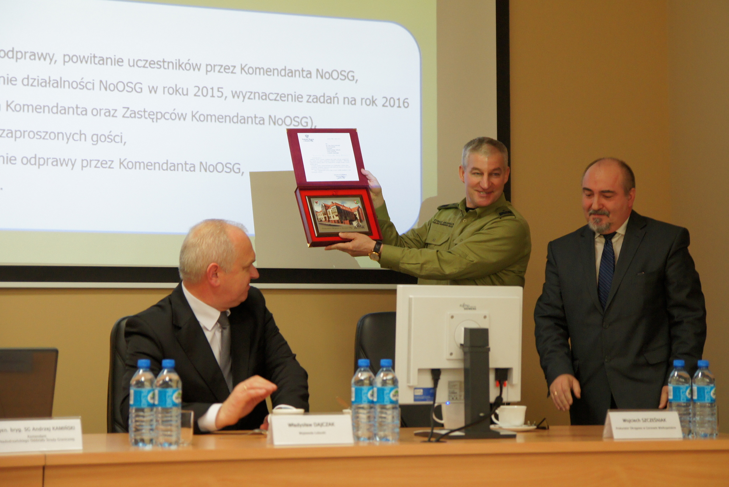 Na zakończenie odprawy Komendant Nadodrzańskiego OSG gen. bryg. SG Andrzej Kamiński wskazał główne zadania, które stoją przed Strażą Graniczną w 2016 roku. Najważniejsze z nich to szczyt państw NATO oraz Światowe Dni Młodzieży i towarzysząca tej imprezie wizyta papieża w Polsce. Przypomniał również, że Straż Graniczna – formacja sprawna, skuteczna i nowoczesna – świętuje w tym roku 25-lecie powstania.