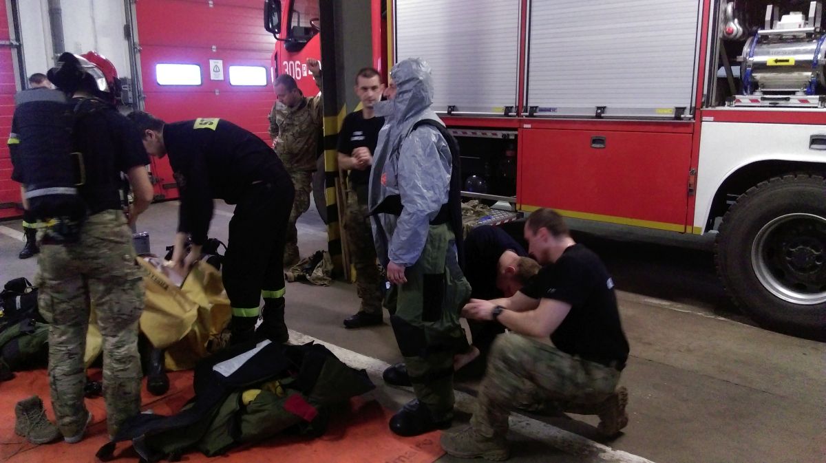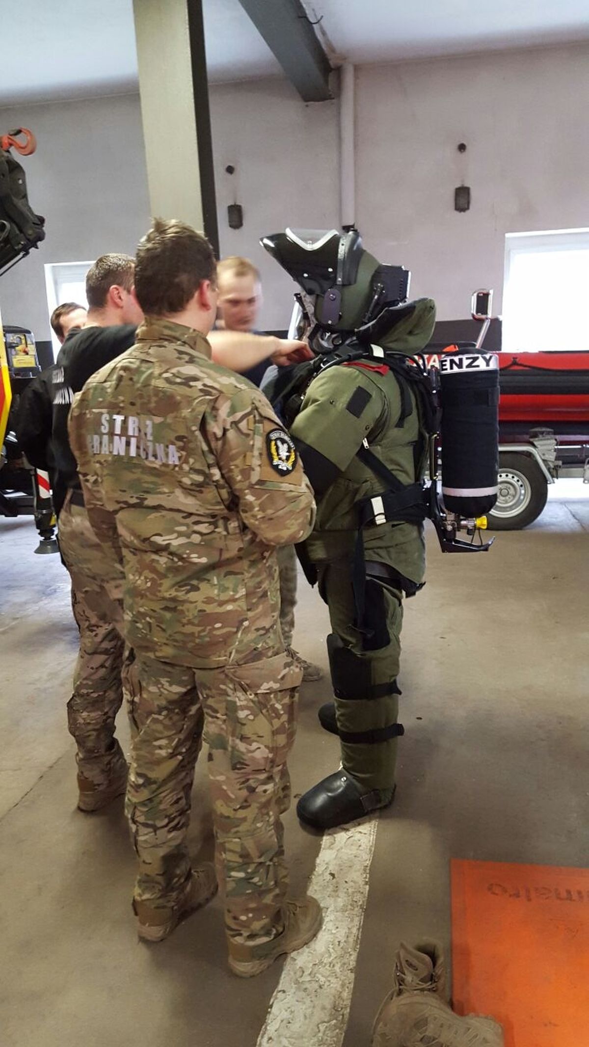 Wspólne ćwiczenie odbyło się w komorze dymowej 6. Jednostki Ratowniczo – Gaśniczej PSP w Poznaniu – Krzesinach. Komora dymowa pozwala wykonywać treningi pracy w sprzęcie ochrony dróg oddechowych i ubraniu ochronnym przy dużym obciążeniu psychofizycznym. Podczas ćwiczeń minerzy – pirotechnicy trenowali wykonanie prostych elementów taktyki w aparatach oddechowych i kombinezonach gazoszczelnych w połączeniu z ciężkim kombinezonem pirotechnicznym EOD9 i kombinezonem lekkim SRS5.