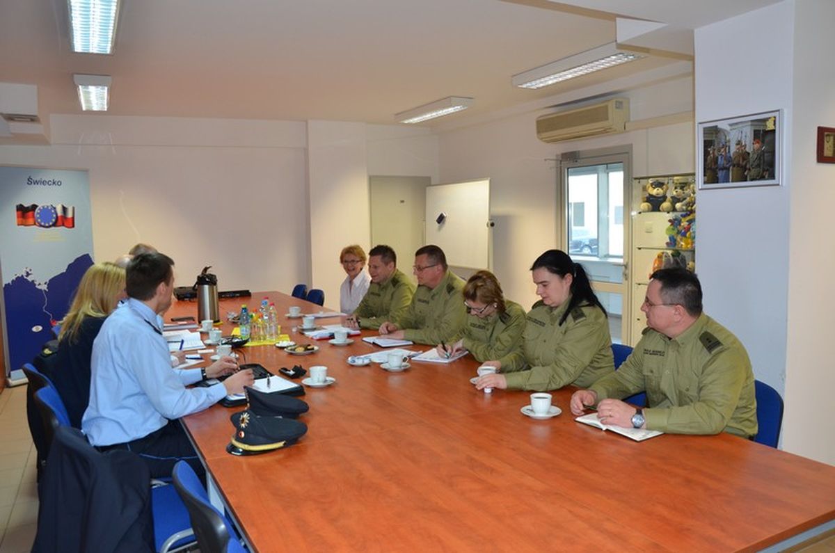 Płk. SG Tomaszowi Michalskiemu i Ralphowi W. Krügerowi podczas spotkania towarzyszyli m.in. Komendant Placówki Straży Granicznej w Świecku ppłk SG Krzysztof Krawiec, naczelnicy Wydziału Analiz, Informacji i Współpracy Międzynarodowej ppłk SG Danuta Łazarczyk, Wydziału Granicznego mjr SG Grzegorz Borkowski i Kierownik Kontyngentu Policji Federalnej w PNCW Björn Schaaf.