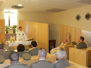 Uroczystą zbiórkę funkcjonariuszy i pracowników poprzedziła msza święta, którą w kaplicy Portu Lotniczego Poznań – Ławica poprowadzili proboszcz garnizonu Poznań ks. płk Mariusz Stolarczyk i kapelan Nadodrzańskiego Oddziału SG ks. kpt. SG Marcin Czuchraniuk.