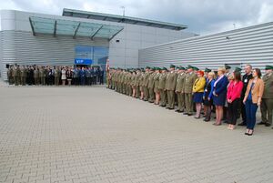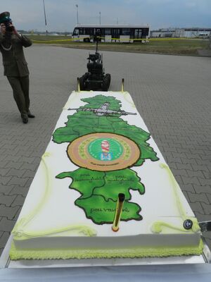 Krótki pokaz działania w sytuacji zagrożenia bezpieczeństwa na lotnisku zaprezentowali funkcjonariusze z Grupy Bezpieczeństwa Lotów, a na zakończenie uroczystości pojawił się jubileuszowy tort okolicznościowy.
