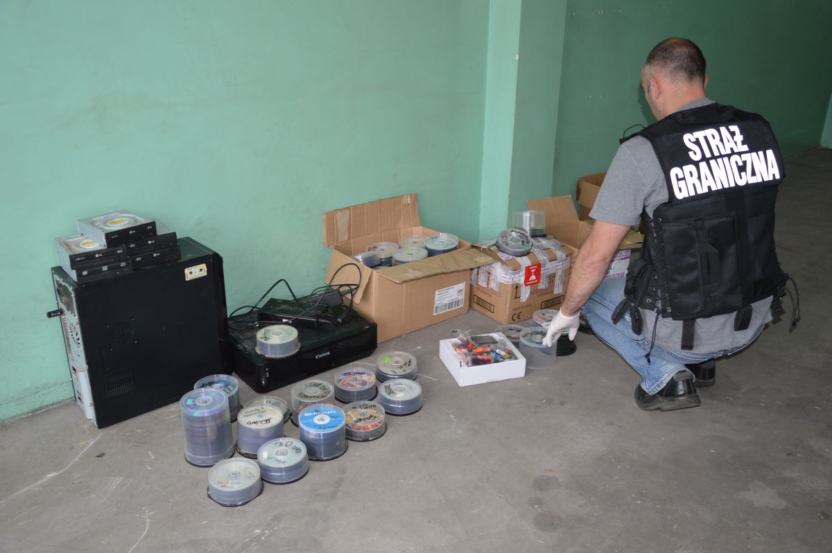 23 maja br. podczas działań prowadzonych na targowisku miejskim w Gubinie, funkcjonariusze SG z Tuplic ujawnili 1500 nielegalnie nagranych płyt z muzyką i filmami. Podejrzewając, że handlujący na tym stoisku mężczyzna może posiadać większą ilość pirackich nośników, strażnicy graniczni postanowili przeszukać również miejsce zamieszkania sprzedającego. Przypuszczenia okazały się słuszne, w domu sprzedawcy zabezpieczono nie tylko kolejne nagrane płyty CD i DVD, ale też sprzęt i materiały służące do nielegalnego kopiowania filmów i utworów muzycznych.