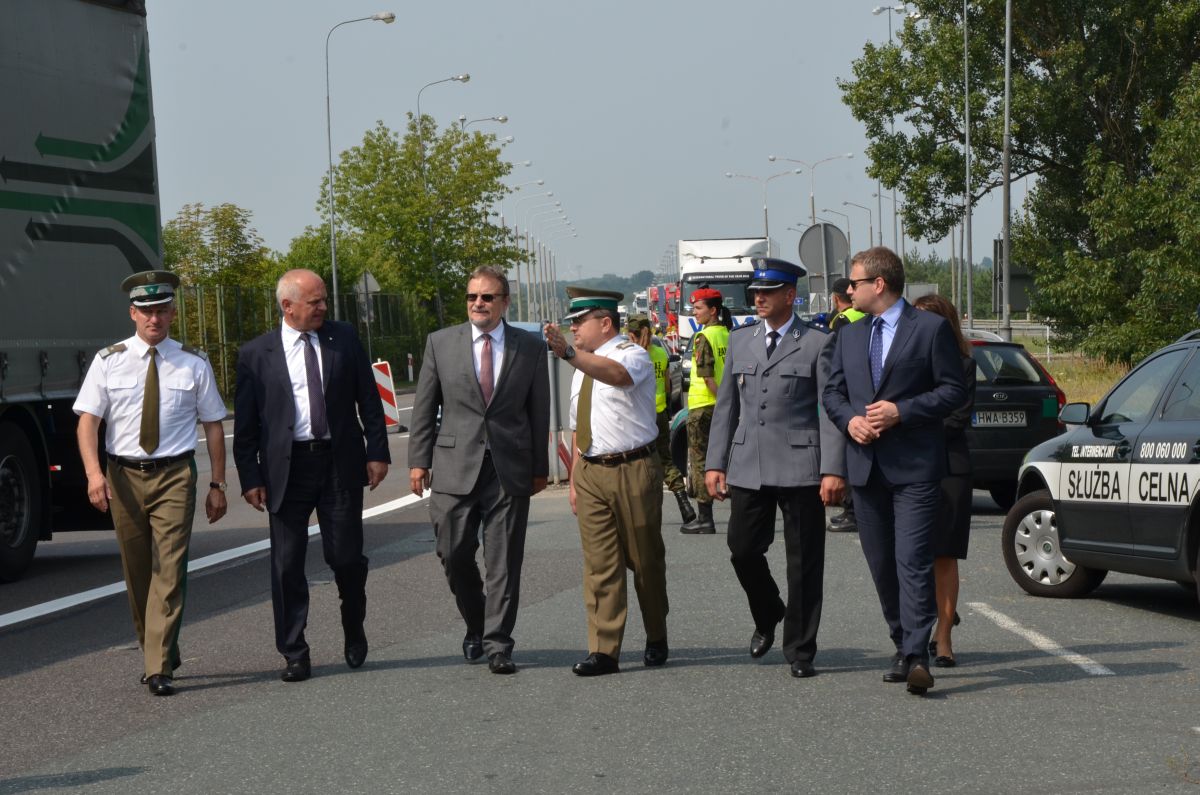 Po rozmowach dotyczących m.in. przywrócenia kontroli granicznej i bezpieczeństwa podczas Światowych Dni Młodzieży, wiceminister Jakub Skiba razem z wojewodą Władysławem Dajczakiem i towarzyszącymi osobami udali się na byłe drogowe przejście graniczne Kostrzyn nad Odrą – Kietz. Komendant Placówki SG w Gorzowie Wielkopolskim ppłk SG Dariusz Kalczyński omówił zadania związane z tymczasowo przywróconą kontrolą graniczną oraz sposób ich realizacji przez funkcjonariuszy.