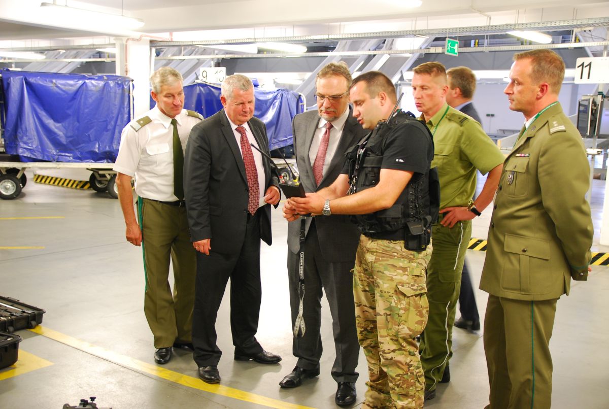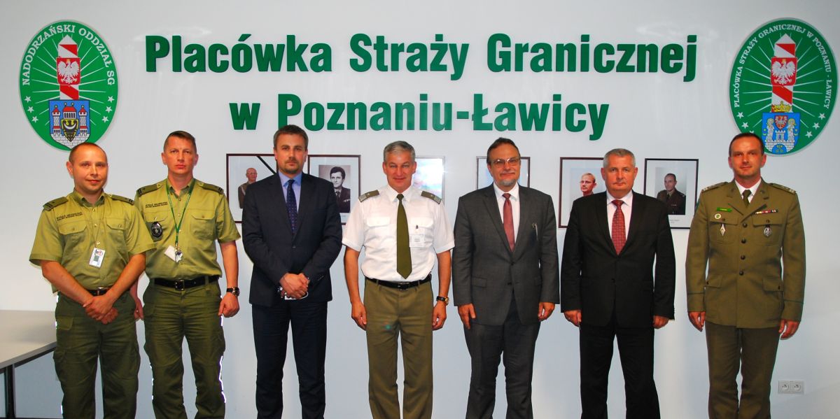 Wiceminister Jakub Skiba razem z Komendantem Głównym SG ppłk. SG Markiem Łapińskim i Zastępcą Dyrektora Departamentu Polityki Granicznej i Funduszy Międzynarodowych MSWiA Grzegorzem Polakiem, a także Komendantem Nadodrzańskiego Oddziału SG gen. bryg. SG Andrzejem Kamińskim złożyli wizytę również w Placówce straży Granicznej w Poznaniu – Ławicy. Komendant placówki ppłk SG Paweł Maziec zapoznał delegację z zadaniami Straży Granicznej realizowanymi w lotniczym przejściu granicznym, przedstawił również sposób organizacji służby w związku z przywróconą kontrolą graniczną. Gościom zaprezentowany został specjalistyczny sprzęt pirotechniczny, który funkcjonariusze wykorzystują np. do przeprowadzania rozpoznania podczas działań na lotnisku.