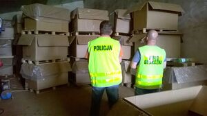 Na terenie jego posesji znaleziono i zabezpieczono także blisko 11 ton krajanki tytoniowej bez akcyzy o wartości 7,2 miliona złotych i ujawniono kompletną linię produkcyjną krajanki tytoniowej oraz gotowe do przerobienia liście o wadze 1,3 tony. Tytoń został zabezpieczony przez funkcjonariuszy Straży Granicznej.