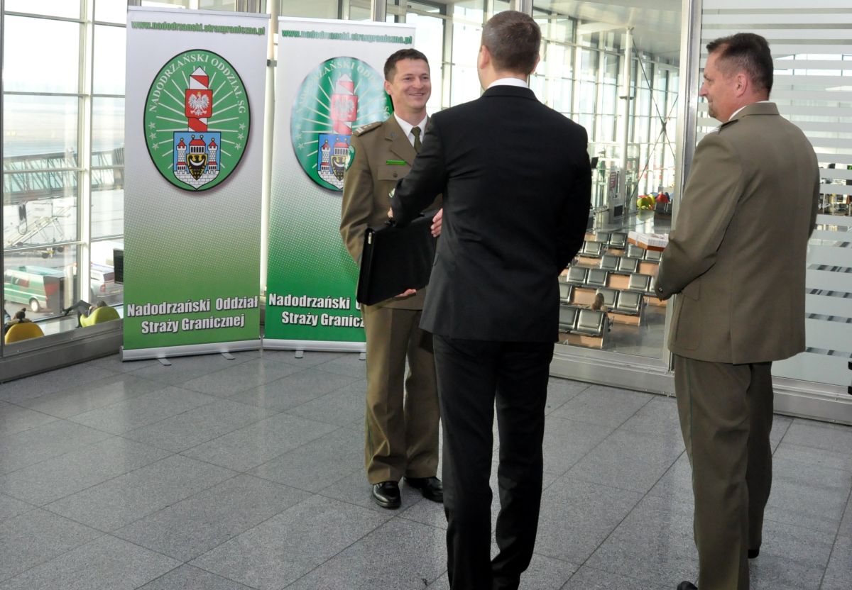 Za przekazanie wartościowego specjalistycznego sprzętu Komendant Nadodrzańskiego Oddziału Straży Granicznej ppłk SG Jacek Szcząchor podziękował Wojewodzie Dolnośląskiemu Pawłowi Hreniakowi już dwa dni wcześniej, podczas spotkania w Dolnośląskim Urzędzie Wojewódzkim we Wrocławiu. Komendantowi NoOSG towarzyszył ppłk SG Artur Maliński, komendant Placówki Straży Granicznej we Wrocławiu – Strachowicach.