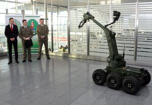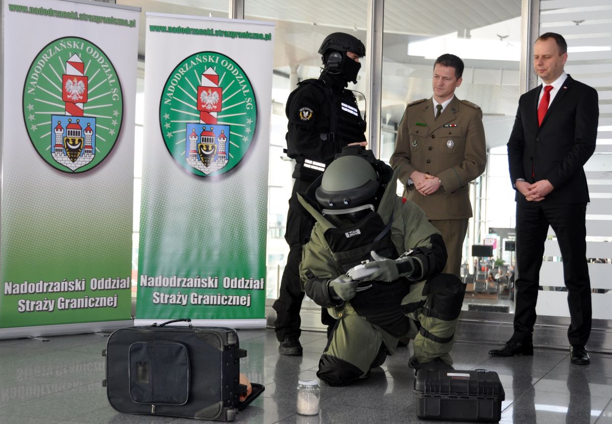 Najnowszego w swojej klasie robota pirotechnicznego o wartości ponad milion złotych i przenośny spektrometr za 0,5 mln zł odebrał Komendant Nadodrzańskiego Oddziału Straży Granicznej ppłk SG Jacek Szcząchor. Przekazanie sprzętu miało miejsce na terenie wrocławskiego lotniska Strachowice. W obecności Komendanta Placówki Straży Granicznej we Wrocławiu – Strachowicach ppłk. SG Artura Malińskiego, a także m.in. Prezesa Zarządu Portu Lotniczego Wrocław – Strachowice Dariusza Kusia, ramię nowego robota podało Wojewodzie Dolnośląskiemu Pawłowi Hreniakowi teczkę z dokumentacją i klucz do konsoli, które następnie wojewoda przekazał Komendantowi Nadodrzańskiego Oddziału SG ppłk. SG Jakowi Szcząchorowi.