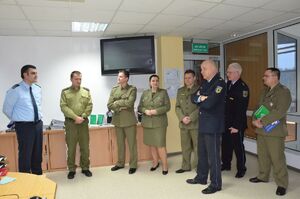 W Polsko – Niemieckim Centrum Współpracy delegacje odwiedziły również wspólną salę operacyjną, gdzie chor. szt. SG Sławomir Trzeciak – pełniący obowiązki kierownika PNCW i Thomas Runzler – kierownik kontyngentu niemieckiego, przedstawili zadania realizowane przez poszczególne służby.