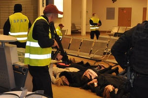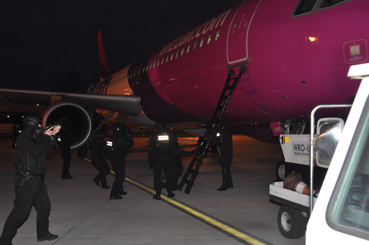 Podczas ćwiczeń zasymulowana została sytuacja, w której niezidentyfikowani porywacze przejęli statek powietrzny. Grożąc pasażerom bronią palną i urządzeniem wybuchowym zmusili kapitana do lądowania awaryjnego na wrocławskim lotnisku. Ponadto w trakcie prowadzonych działań dwóch terrorystów wraz z zakładnikami wtargnęło do terminala pasażerskiego. Scenariusz przeprowadzonych ćwiczeń obejmował przeprowadzenie negocjacji, elementy dwutorowego szturmu z wykorzystaniem wszystkich możliwości dostania się na pokład statku powietrznego oraz na teren terminala, a także ewakuację pasażerów oraz działania ratunkowe związane z pomocą medyczną. Czynności w zakresie minersko- pirotechnicznym zrealizowali żołnierze z WSOWL we Wrocławiu. Głównym założeniem ćwiczenia było sprawdzenie skuteczności procedur wdrażanych w takich sytuacjach, a także sprawdzenie efektywności interwencji podejmowanych przez funkcjonariuszy. Ćwiczenia zostały przeprowadzone w ramach II Krajowej Studenckiej Konferencji Naukowej nt. "Interdyscyplinarność bezpieczeństwa : Teoria-Praktyka-Edukacja".