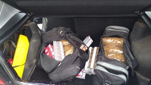 Funkcjonariusze z Placówki SG w Kaliszu wspólnie z funkcjonariuszami KAS z Poznania, podczas prowadzonych działań w powiecie tureckim, ujawnili 23620 sztuk papierosów, 10 kilogramów krajanki tytoniowej oraz 4,5 l. spirytusu, bez polskich znaków akcyzy. Szacunkowa wartość zatrzymanego towaru wynosi 17.706 zł. Osobom, u których ujawniono nielegalny towar grożą wysokie grzywny. Postępowanie w tej sprawie prowadzą funkcjonariusze KAS z Poznania.