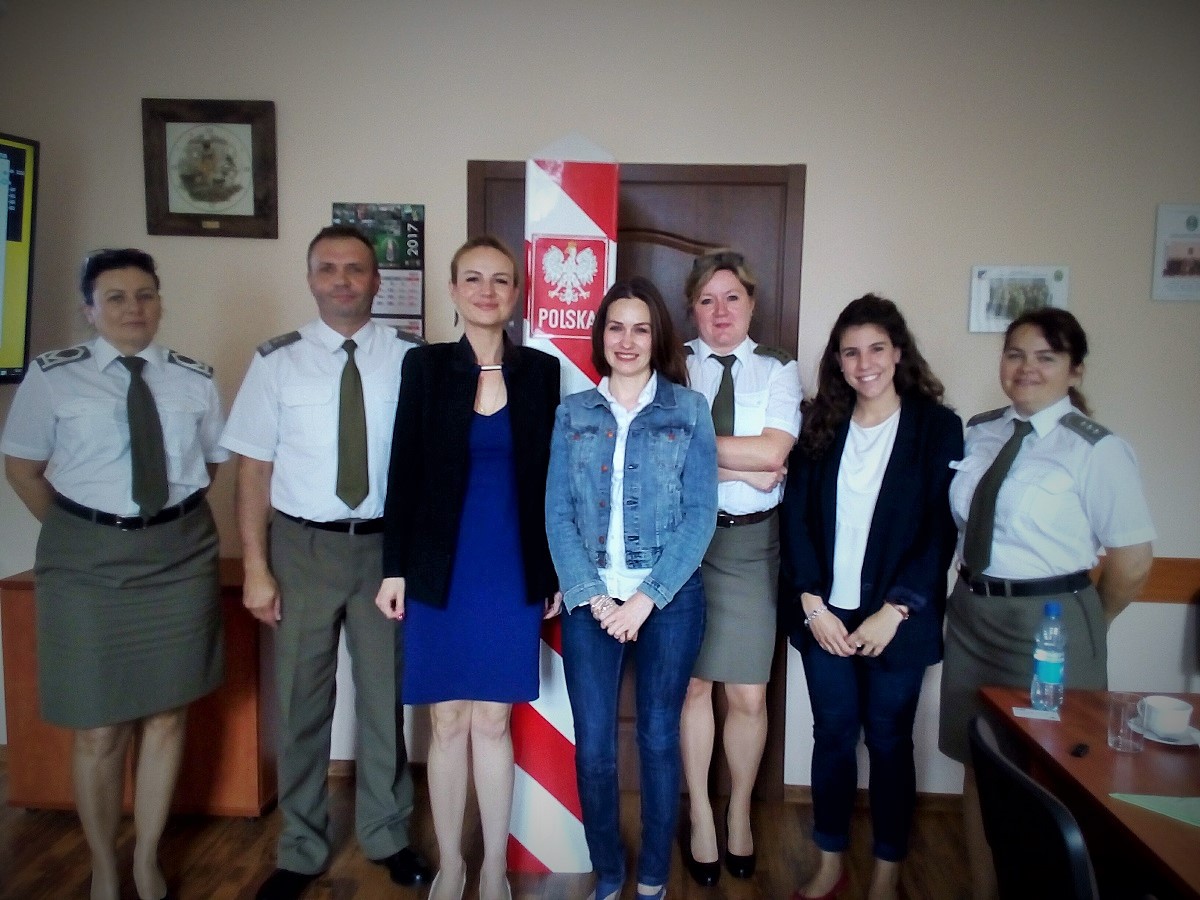 Spotkanie zorganizowane zostało przez Ministerstwo Spraw Zagranicznych, a dotyczyło problematyki handlu ludźmi. Gości przyjął Komendant Placówki Straży Granicznej w Zielonej Górze – Babimoście – Pan ppłk SG Dariusz Michalski. W spotkaniu uczestniczyła Koordynator Nadodrzańskiego Oddziału SG do Spraw Zapobiegania i Zwalczania Handlu Ludźmi – kpt. SG Małgorzata Maciejewska oraz funkcjonariuszki z Placówki SG w Zielonej Górze -Babimoście, chor.szt. SG Bożena Łosiakowska oraz sierż.sztab. SG Edyta Jednorowicz. Koordynator zaprezentowała zadania realizowane w Nadodrzańskim Oddziale Straży Granicznej w ramach identyfikacji potencjalnych ofiar oraz zapobiegania i zwalczania handlu ludźmi. W materiale zawarte zostały informacje dotyczące m.in. systemu koordynacji, instrumentów wspomagających identyfikację, szkoleń dla funkcjonariuszy SG oraz działań profilaktycznych i informacyjnych skierowanych do młodzieży, pedagogów, instytucji społecznych i organów państwowych. Kpt. SG Małgorzata Maciejewska wskazała jakie działania podejmowane są w ramach zwalczania procederu oraz opowiedziała o pracy w Wojewódzkich Zespołach do spraw Zwalczania Handlu Ludźmi. Poinformowała również o realizacji przedsięwzięć w ramach projektu „ Lubuski alians służb mundurowych i cywilnych wobec handlu ludźmi i przestępczości transgranicznej”, który był dofinansowany z Norweskiego Mechanizmu Finansowego. Goście byli wnikliwie zainteresowani tematem, a cała dyskusja przebiegała w przyjemnej atmosferze.
