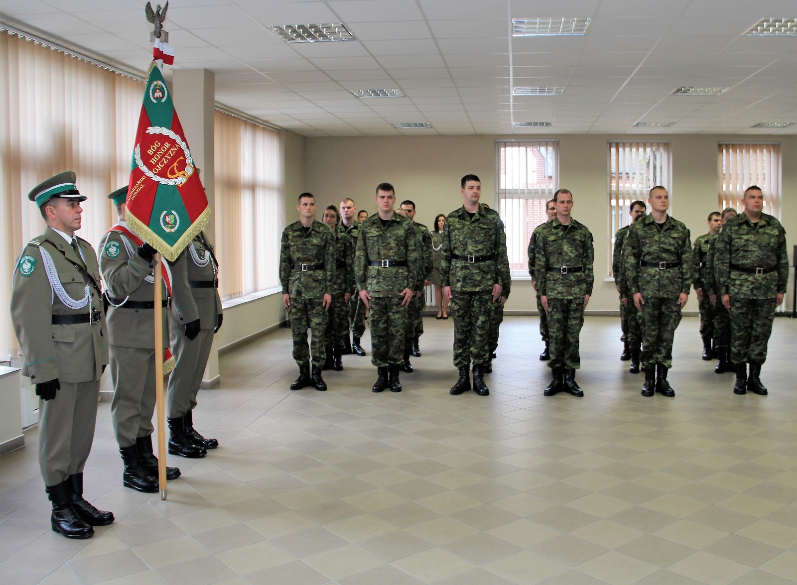 Gen. bryg. SG Wojciech Skowronek - Komendant Nadodrzańskiego Oddziału Straży Granicznej odebrał ślubowanie od 18 nowo przyjętych funkcjonariuszy. Uroczystość odbyła się w Komendzie NoOSG w Krośnie Odrzańskim z udziałem pocztu sztandarowego, kadry kierowniczej i rodzin funkcjonariuszy. Komendant, pogratulował ślubującym wstąpienia w szeregi Nadodrzańskiego Oddziału Straży Granicznej. Podkreślił, że zakładając mundur funkcjonariusza Straży Granicznej należy pamiętać, by nosić go z dumą i szacunkiem. Zaznaczył, że każdy funkcjonariusz powinien strzec dobrego imienia służby, honoru i godności. Błogosławieństwa nowym funkcjonariuszom udzielił kapelan Nadodrzańskiego Oddziału Straży Granicznej kpt. SG Marcin Czuchraniuk. Już za kilka dni funkcjonariusze, którzy dzisiaj ślubowali rozpoczną kilkumiesięczne szkolenie, po którym zostaną skierowani do pełnienia służby w Placówkach Nadodrzańskiego Oddziału Straży Graniczne