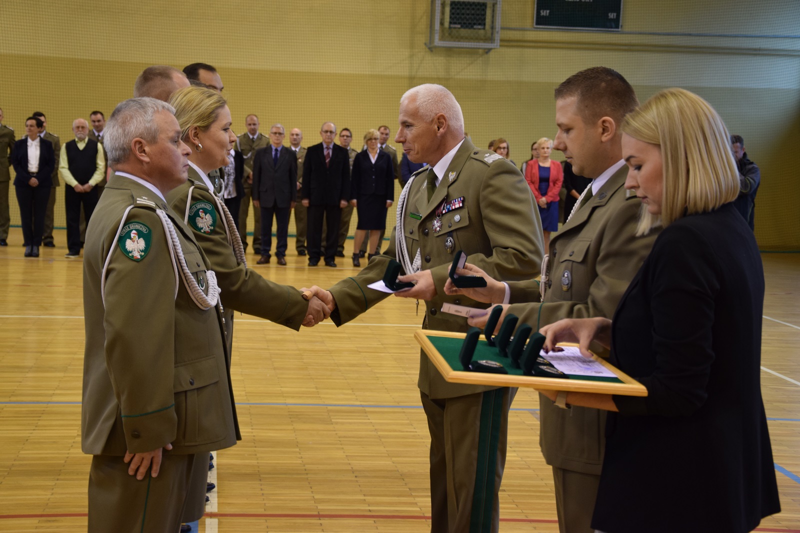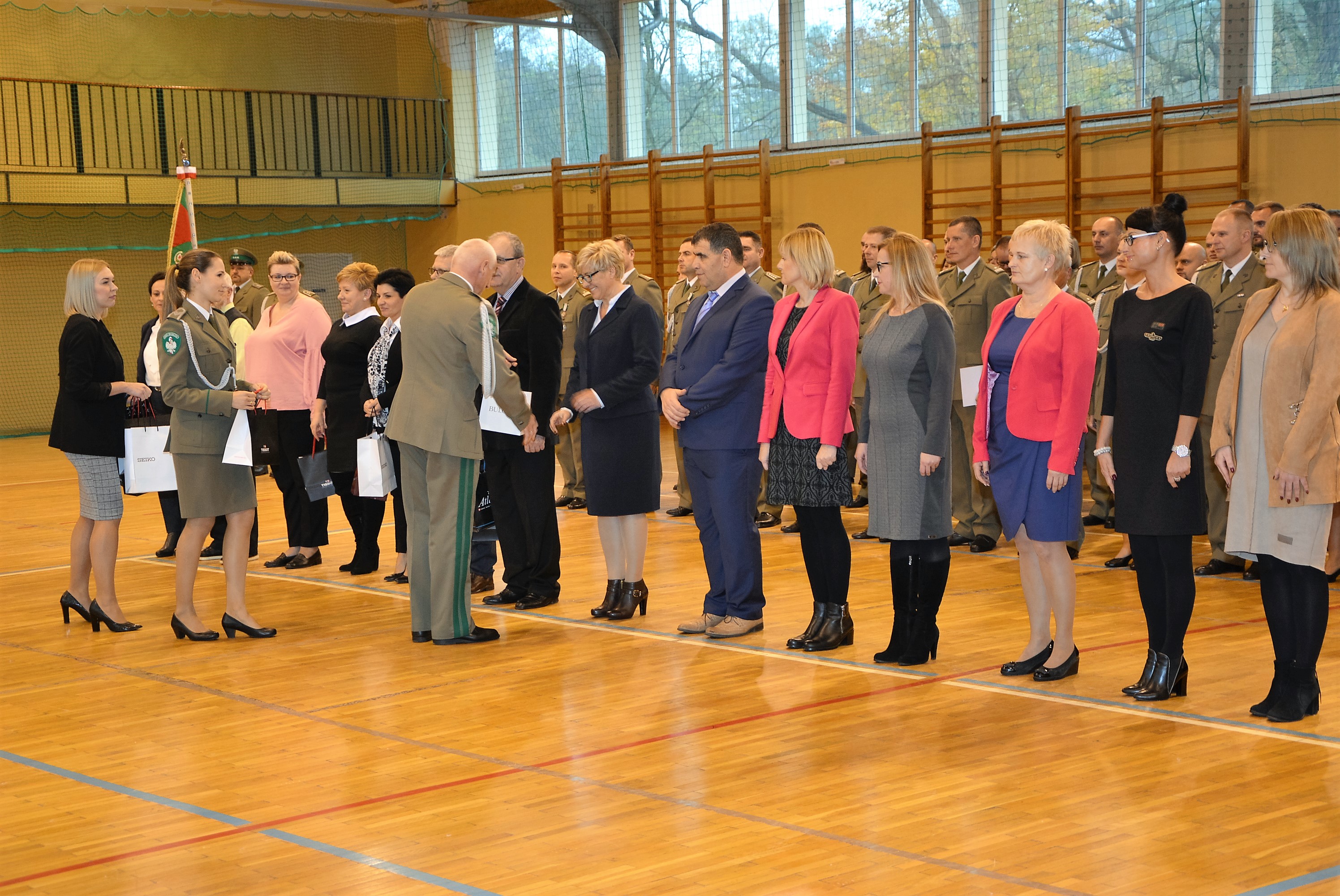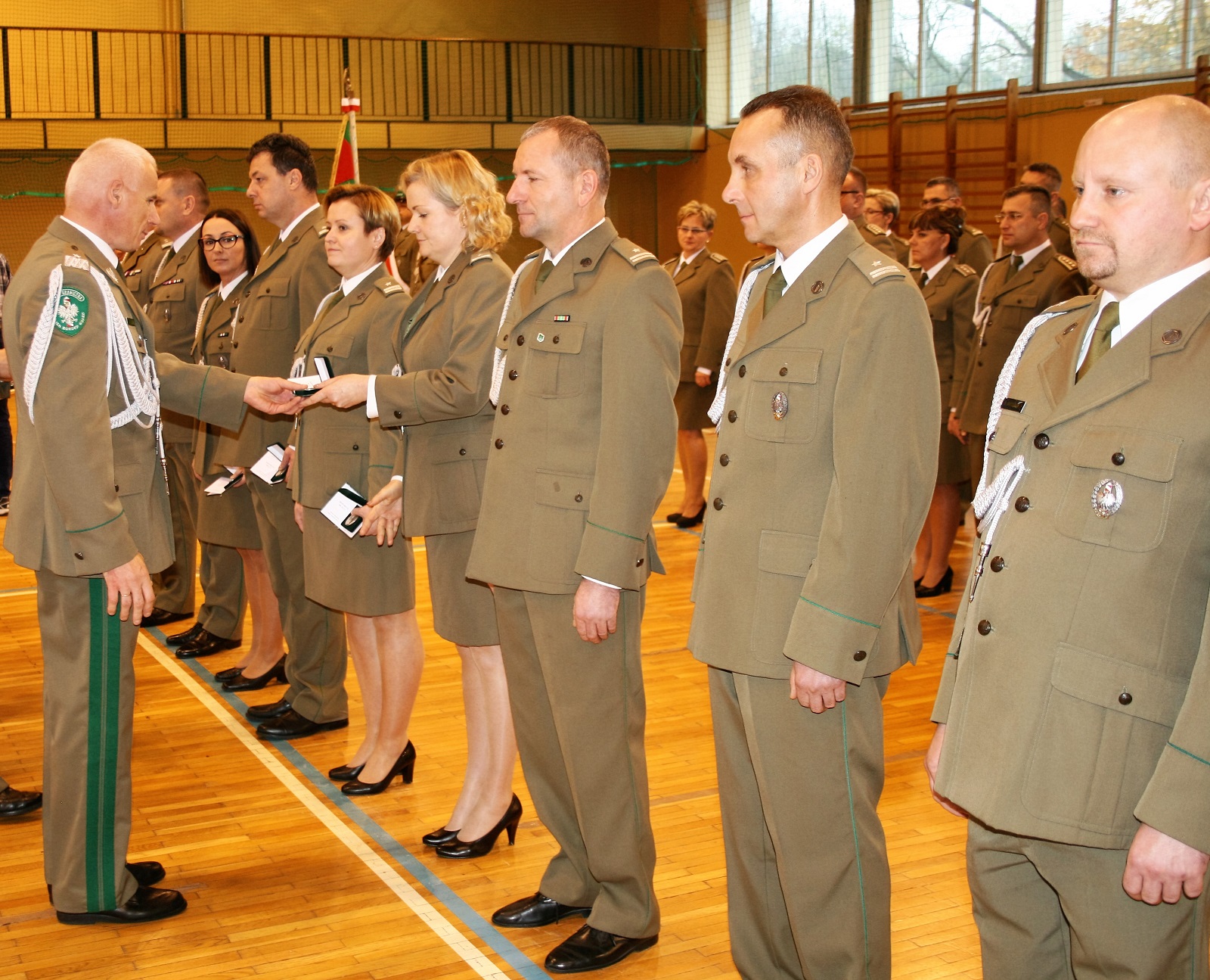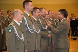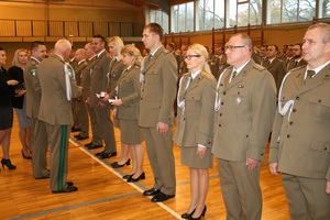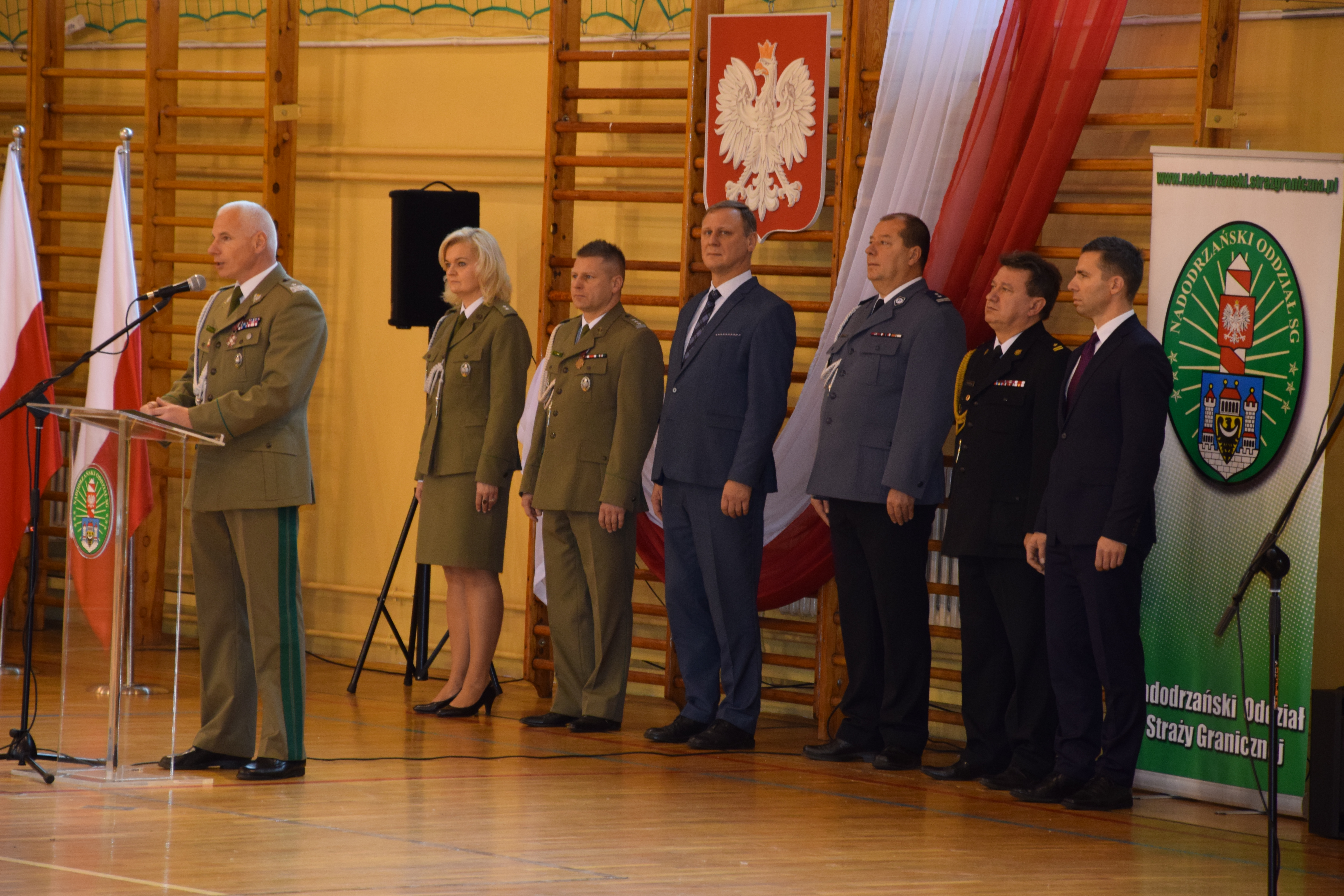 Wszystkich zaproszonych gości powitał gen. bryg. SG Wojciech Skowronek – Komendant Nadodrzańskiego Oddziału Straży Granicznej, który w swym wystąpieniu podkreślił, iż wywalczona niepodległość była długo oczekiwanym wydarzeniem, ale także wyzwaniem wymagającym nieustannej pracy i troski o jej umocnienie i utrzymanie. Narodowe Święto Odzyskania Niepodległości jest znakomitą okazją do złożenia podziękowań funkcjonariuszom i pracownikom, którzy poprzez swoją służbę i pracę zapewniają bezpieczeństwo naszemu krajowi. Decyzją Ministra Spraw Wewnętrznych i Administracji za wybitne zasługi dla Straży Granicznej trzech funkcjonariuszy NoOSG otrzymało Brązowe Medale za Zasługi dla Straży Granicznej. Ponadto Minister Spraw Wewnętrznych i Administracji za szczególne zaangażowanie podczas wykonywania obowiązków służbowych, które przełożyło się na osiągane wyniki wyróżnił funkcjonariusza NoOSG nagrodą pieniężną. 8 funkcjonariuszy NoOSG zostało uhonorowany przez Komendanta Głównego SG Odznaką Straży Granicznej, przyznawaną za znaczne osiągnięcia w służbie. Ponadto, po raz pierwszy na wniosek Kapituły Odznaki Nadodrzańskiego Oddziału Straży Granicznej, za szczególne zasługi i osiągnięcia na rzecz NoOSG oraz za wieloletnią nienaganną służbę Komendant NoOSG przyznał 49 funkcjonariuszom pamiątkową Odznakę Nadodrzańskiego Oddziału SG. Komendant Nadodrzańskiego Oddziału SG wyróżnił również nagrodą rzeczową 31 funkcjonariuszy i 15 pracowników. Z okazji Święta Niepodległości mianowanie na wyższy stopień otrzymało 3 oficerów. Awansowano również 60 chorążych i 82 podoficerów. Wręczono również medale przyznane przez Niezależny Samorządny Związek Zawodowy Funkcjonariuszt Straży Granicznej. Medalem "Za Zasługi dla NSZZ FSG" odznaczono 7 funkcjonariuszy, natomiast pamiątkowym medalem "XXV-lecia NSZZ FSG" odznaczono 4 funkcjonariuszy. Medale wręczył Przewodniczący Zarządu Oddziałowego NSZZ FSG przy Nadodrzańskim Oddziale SG mjr SG Tomasz Deszcz.