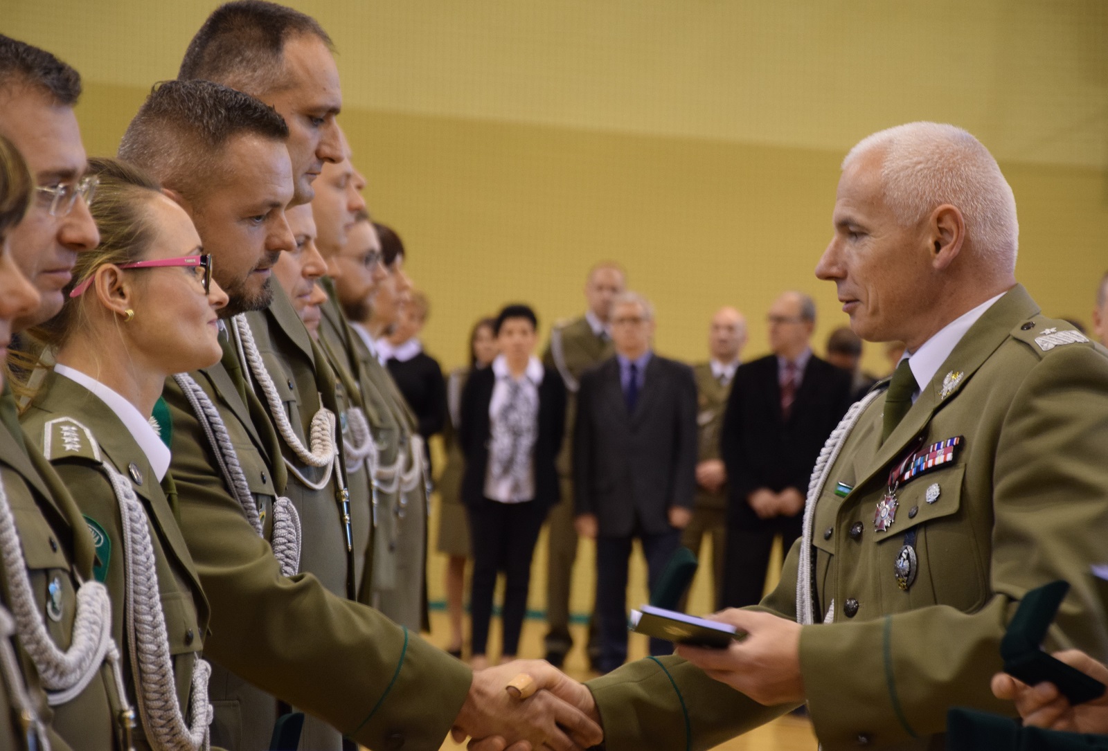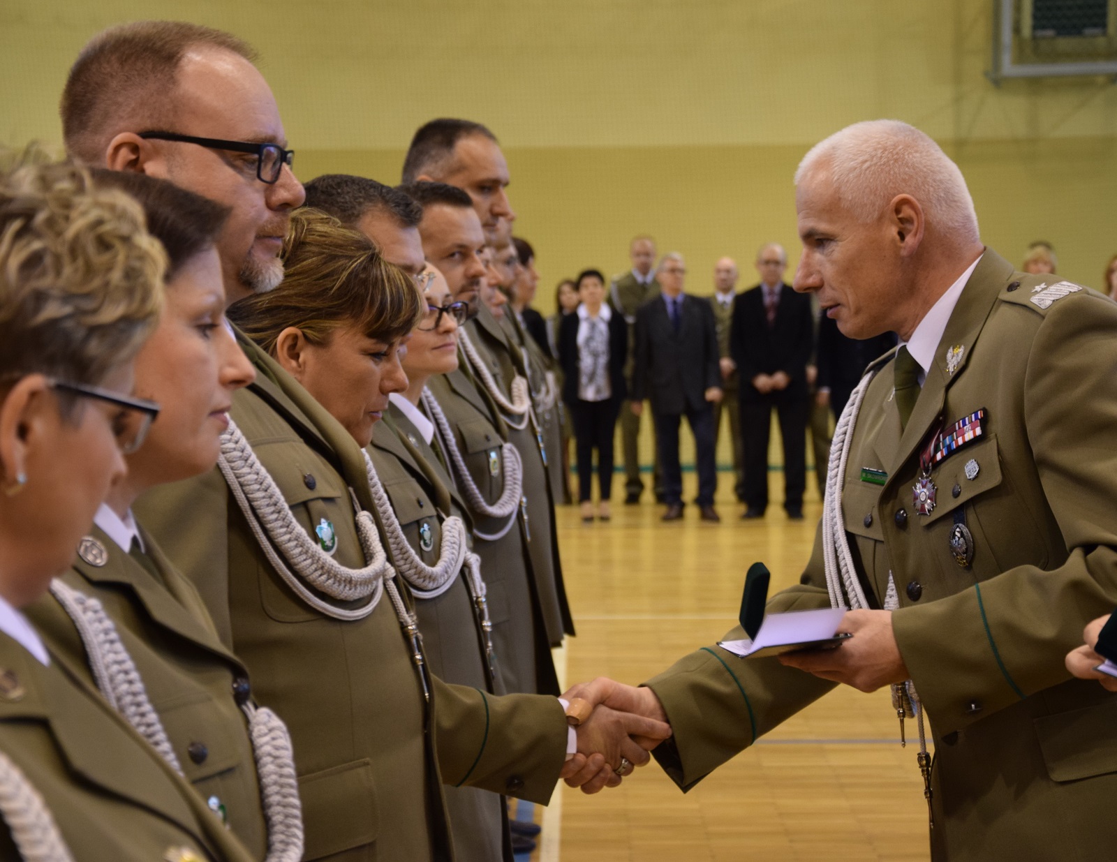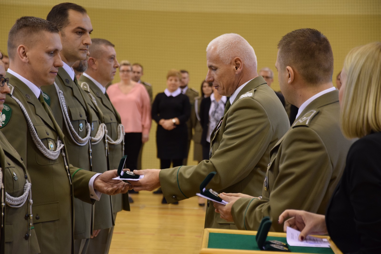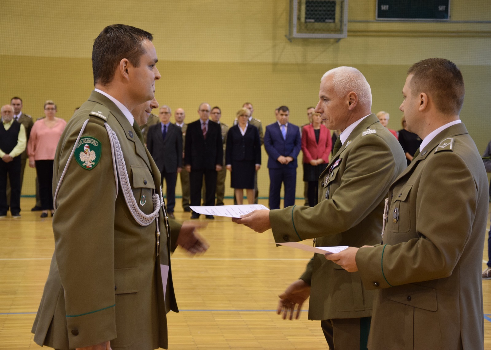 Wszystkich zaproszonych gości powitał gen. bryg. SG Wojciech Skowronek – Komendant Nadodrzańskiego Oddziału Straży Granicznej, który w swym wystąpieniu podkreślił, iż wywalczona niepodległość była długo oczekiwanym wydarzeniem, ale także wyzwaniem wymagającym nieustannej pracy i troski o jej umocnienie i utrzymanie. Narodowe Święto Odzyskania Niepodległości jest znakomitą okazją do złożenia podziękowań funkcjonariuszom i pracownikom, którzy poprzez swoją służbę i pracę zapewniają bezpieczeństwo naszemu krajowi. Decyzją Ministra Spraw Wewnętrznych i Administracji za wybitne zasługi dla Straży Granicznej trzech funkcjonariuszy NoOSG otrzymało Brązowe Medale za Zasługi dla Straży Granicznej. Ponadto Minister Spraw Wewnętrznych i Administracji za szczególne zaangażowanie podczas wykonywania obowiązków służbowych, które przełożyło się na osiągane wyniki wyróżnił funkcjonariusza NoOSG nagrodą pieniężną. 8 funkcjonariuszy NoOSG zostało uhonorowany przez Komendanta Głównego SG Odznaką Straży Granicznej, przyznawaną za znaczne osiągnięcia w służbie. Ponadto, po raz pierwszy na wniosek Kapituły Odznaki Nadodrzańskiego Oddziału Straży Granicznej, za szczególne zasługi i osiągnięcia na rzecz NoOSG oraz za wieloletnią nienaganną służbę Komendant NoOSG przyznał 49 funkcjonariuszom pamiątkową Odznakę Nadodrzańskiego Oddziału SG. Komendant Nadodrzańskiego Oddziału SG wyróżnił również nagrodą rzeczową 31 funkcjonariuszy i 15 pracowników. Z okazji Święta Niepodległości mianowanie na wyższy stopień otrzymało 3 oficerów. Awansowano również 60 chorążych i 82 podoficerów. Wręczono również medale przyznane przez Niezależny Samorządny Związek Zawodowy Funkcjonariuszt Straży Granicznej. Medalem "Za Zasługi dla NSZZ FSG" odznaczono 7 funkcjonariuszy, natomiast pamiątkowym medalem "XXV-lecia NSZZ FSG" odznaczono 4 funkcjonariuszy. Medale wręczył Przewodniczący Zarządu Oddziałowego NSZZ FSG przy Nadodrzańskim Oddziale SG mjr SG Tomasz Deszcz.