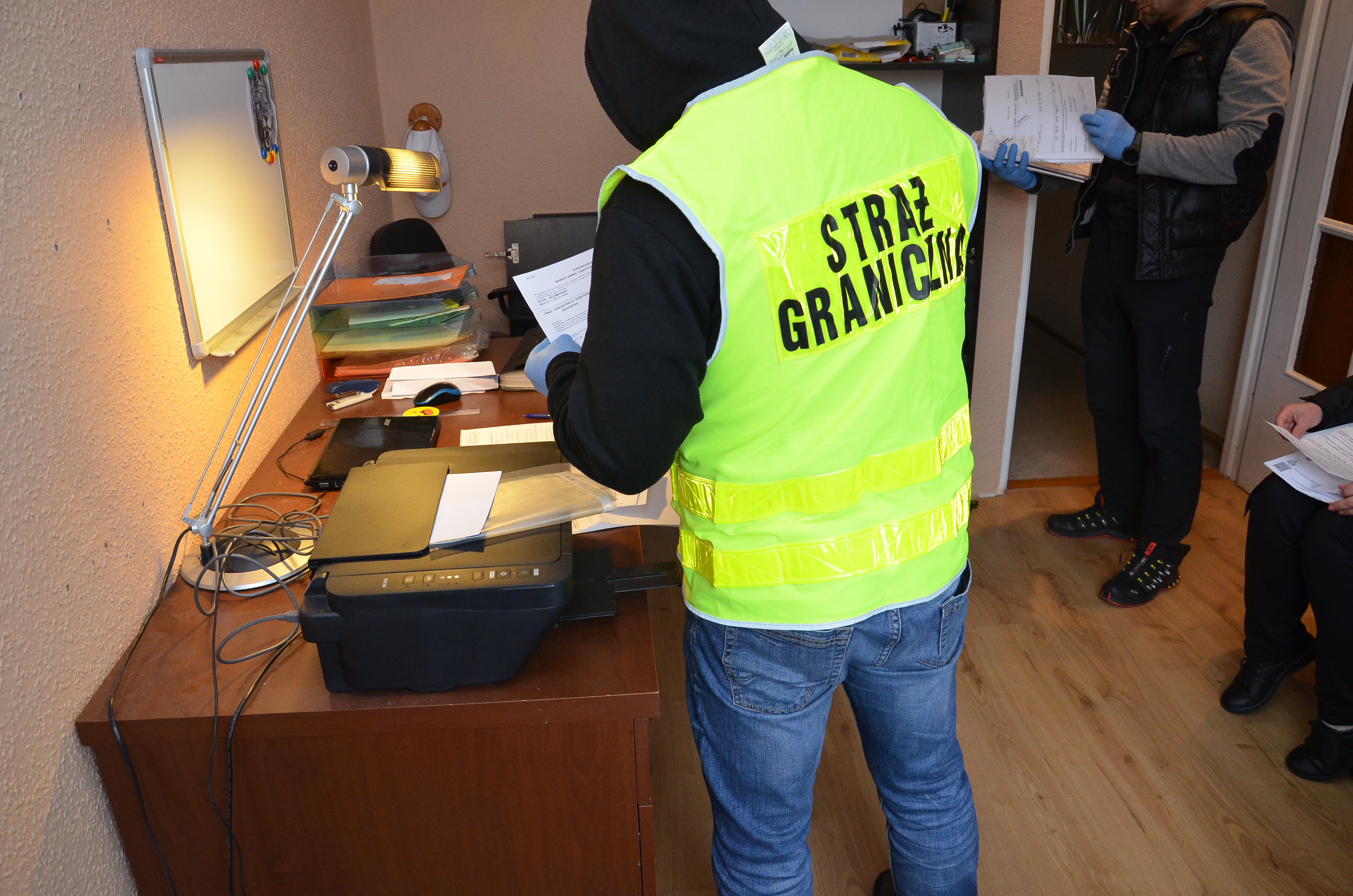 Działania związane z zatrzymaniem osób przeprowadzono jednocześnie gdyż istniała obawa, że osoby mogą próbować zbiec. Tego samego dnia przeprowadzono również przeszukania kilku mieszkań oraz samochodów, podczas których zabezpieczono różne dokumenty tj. zezwolenia na pracę, oświadczenia o zamiarze powierzenia wykonywania pracy dla cudzoziemców, kserokopie paszportów, druków, wniosków oraz pieczęcie firmowe. Zabezpieczono również telefony komórkowe oraz komputery i laptopy.