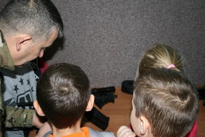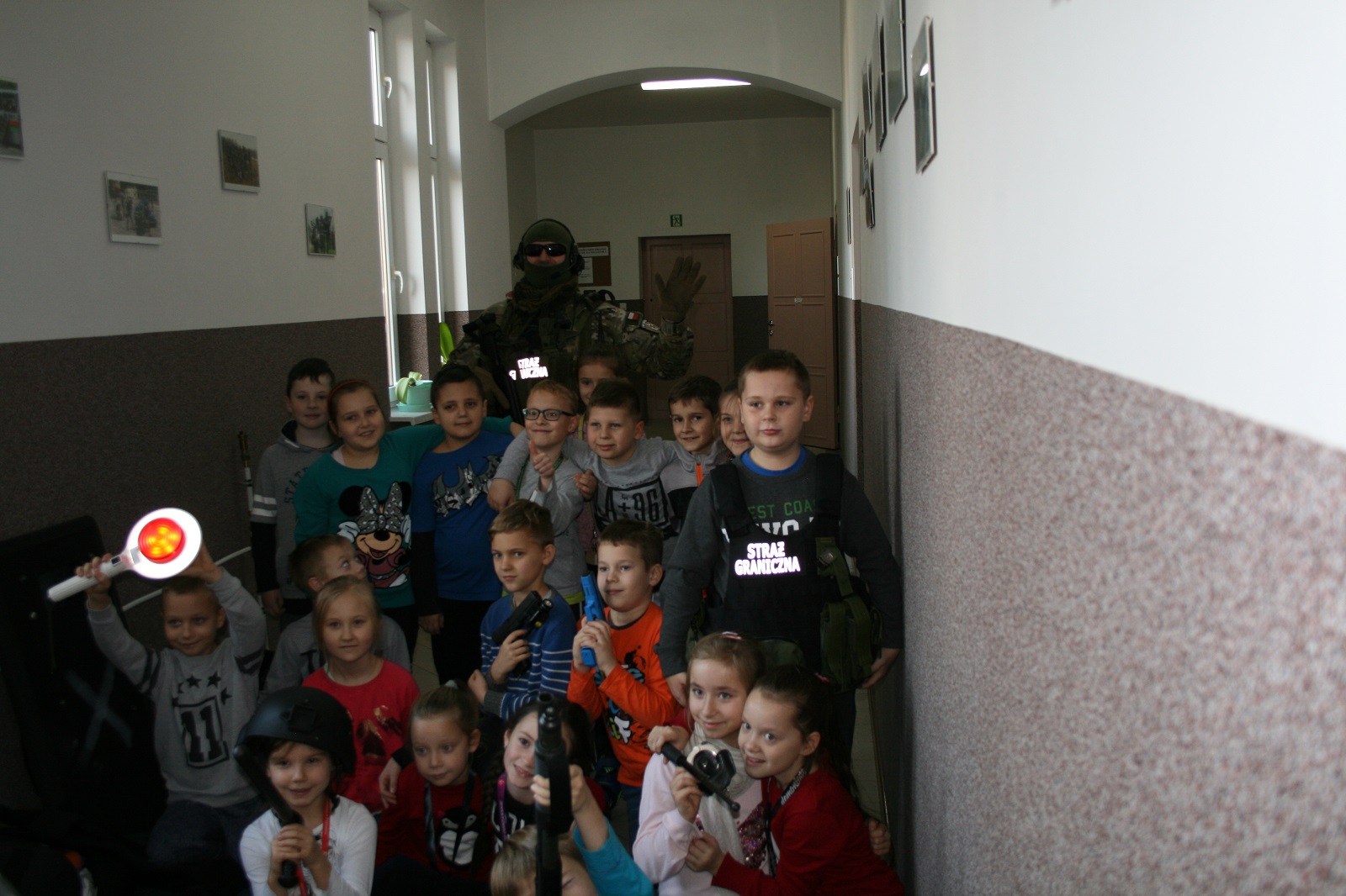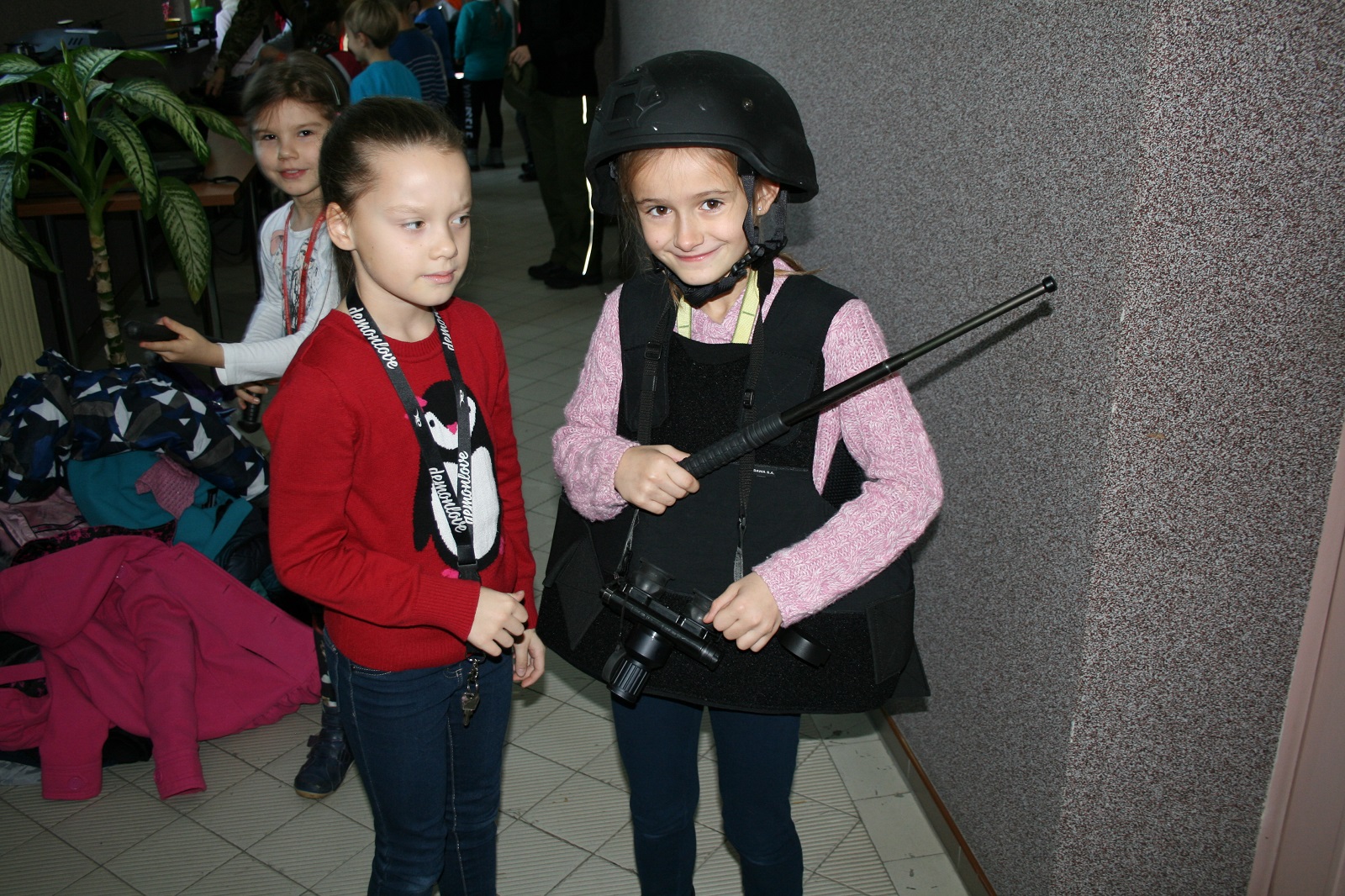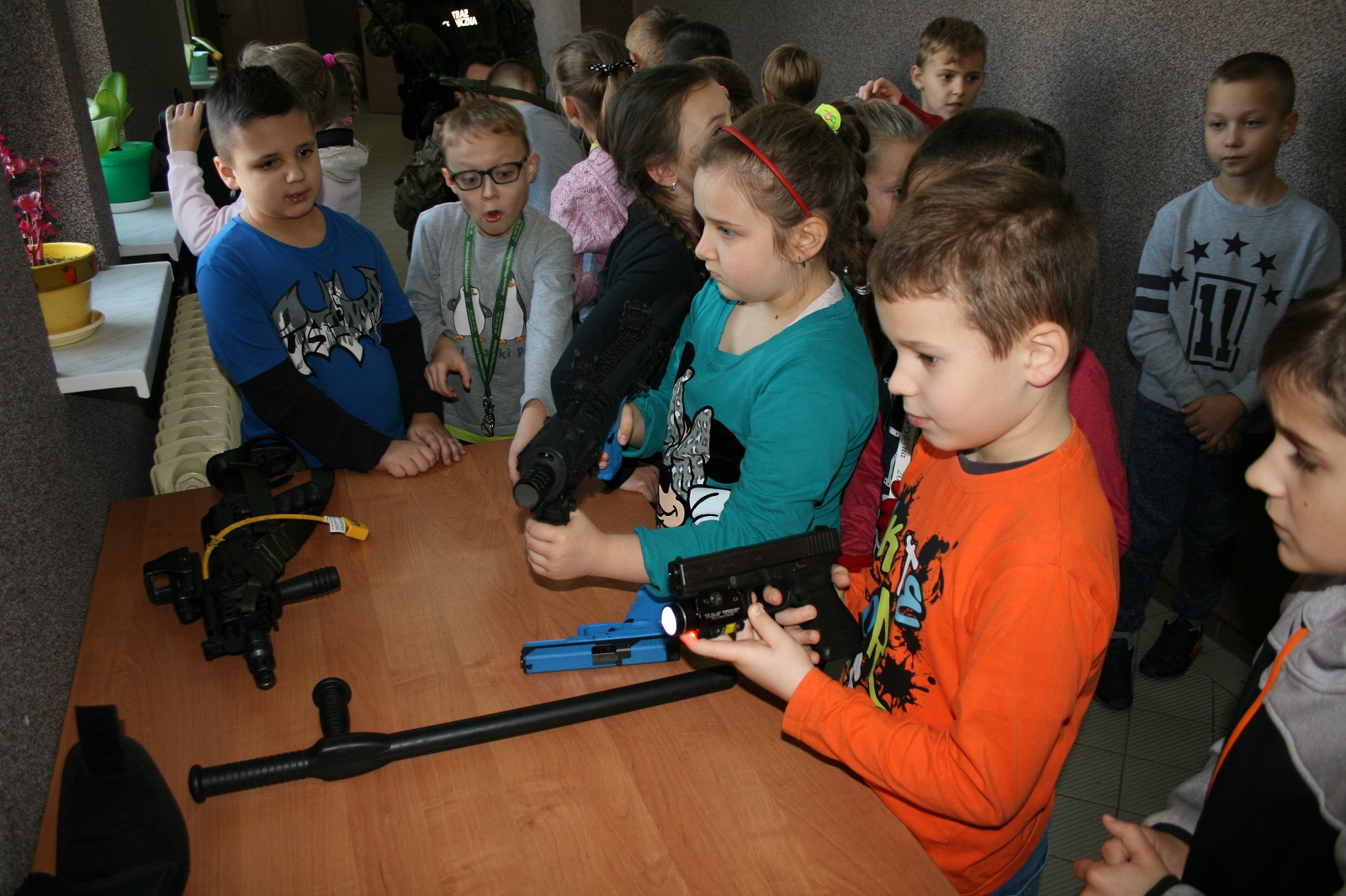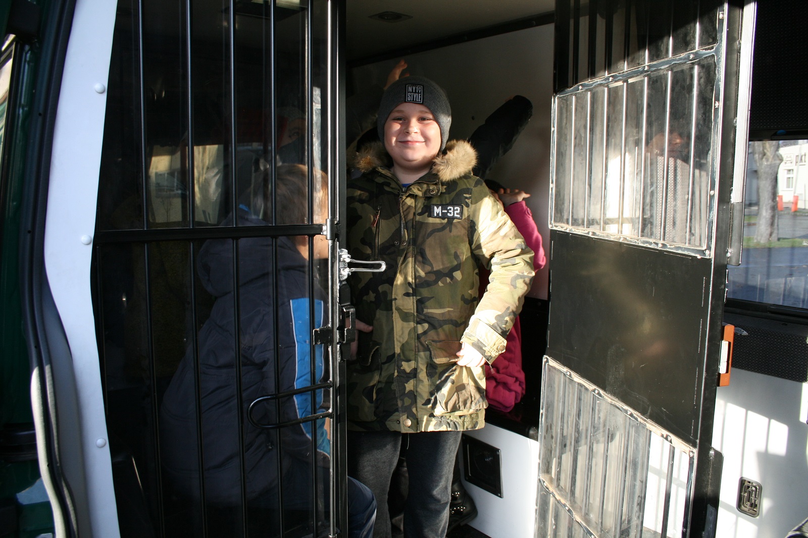 Mali goście wzięli udział w pokazie specjalistycznego sprzętu i samochodów służbowych będących na wyposażeniu Straży Granicznej. Każdy mógł wziąć w ręce karabin, przymierzyć kamizelkę kuloodporną, hełm i założyć kajdanki. Następnie wszyscy chętni mogli zasiąść za kierownicą pojazdów służbowych i przekonać się jak głośno działają sygnały dźwiękowe. Samochód więźniarka cieszył się największym zainteresowaniem wśród naszych małych gości. Dzieci zrobiły sobie symboliczny odcisk palca oraz spróbowały swoich sił podczas strzelania na symulatorze. Radości i zabawy było co niemiara.