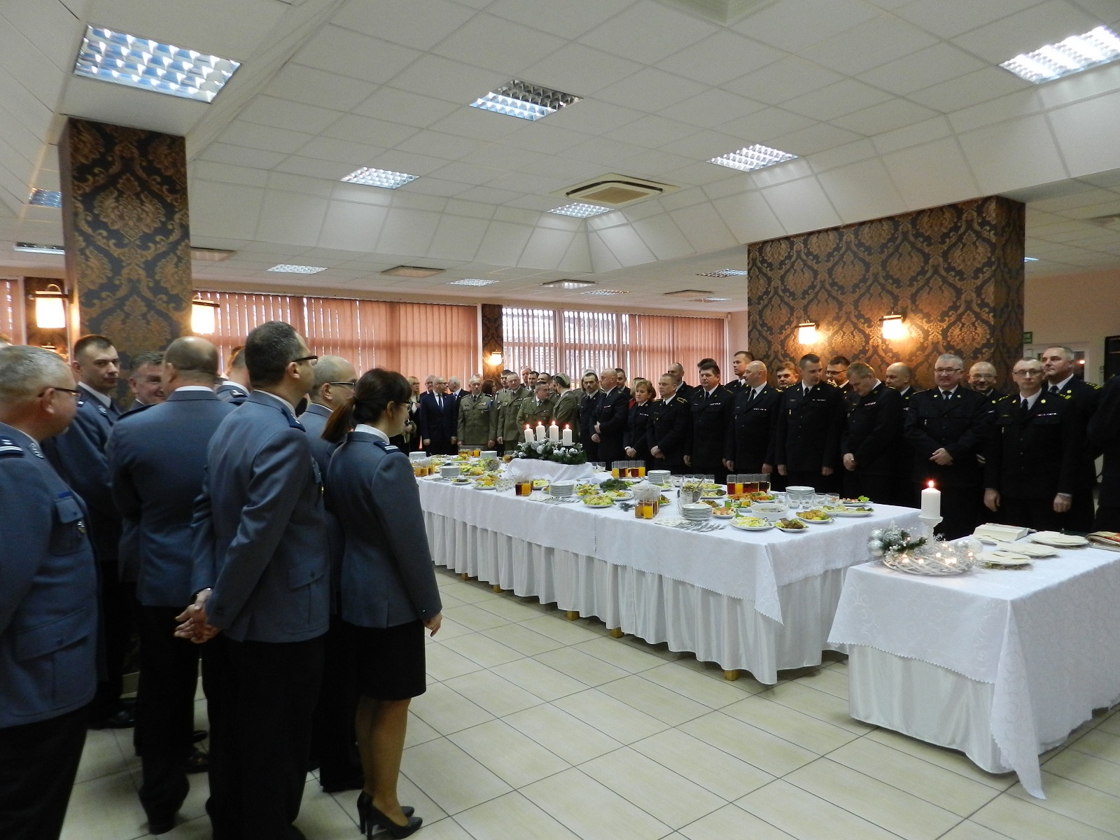 Przedstawiciele wszystkich służb mundurowych z województwa lubuskiego po raz pierwszy, spotkali się w Komendzie Wojewódzkiej Policji w Gorzowie Wlkp, by przełamać się opłatkiem i złożyć sobie życzenia z okazji zbliżających się Świąt Bożego Narodzenia. W uroczystym spotkaniu uczestniczyli funkcjonariusze Straży Granicznej, Policji, Państwowej Straży Pożarnej i Krajowej Administracji Skarbowej oraz przedstawiciele zaprzyjaźnionych i współpracujących z lubuskimi służbami instytucji. Na spotkaniu nie zabrakło również samorządowców, Wicewojewody Lubuskiego Roberta Palucha oraz Dyrektora Generalnego LUW Romana Sondeja.