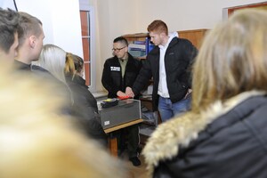 Strażnicy graniczni zaprezentowali przeszło 70-osobowej grupie studentów kierunku Bezpieczeństwo Wewnętrzne sprzęt służbowy i transportowy wykorzystywany w codziennej działalności, opowiadali o specyfice służby i zadaniach wykonywanych przez Straż Graniczną. Przewodnik psa służbowego przedstawił możliwości wykorzystania psa służbowego do wyszukiwania narkotyków. A że dobrych rad nigdy za wiele poruszono też kwestie związane z bezpieczeństwem. Młodzi ludzie z zaciekawieniem słuchali o naszej służbie, w tym o procesie rekrutacji do Straży Granicznej, gdyż za jakiś czas staną przed trudnym zadaniem wyboru/poszukiwania pracy, a służba w Straży Granicznej korespondowałaby z kierunkiem ich wykształcenia.