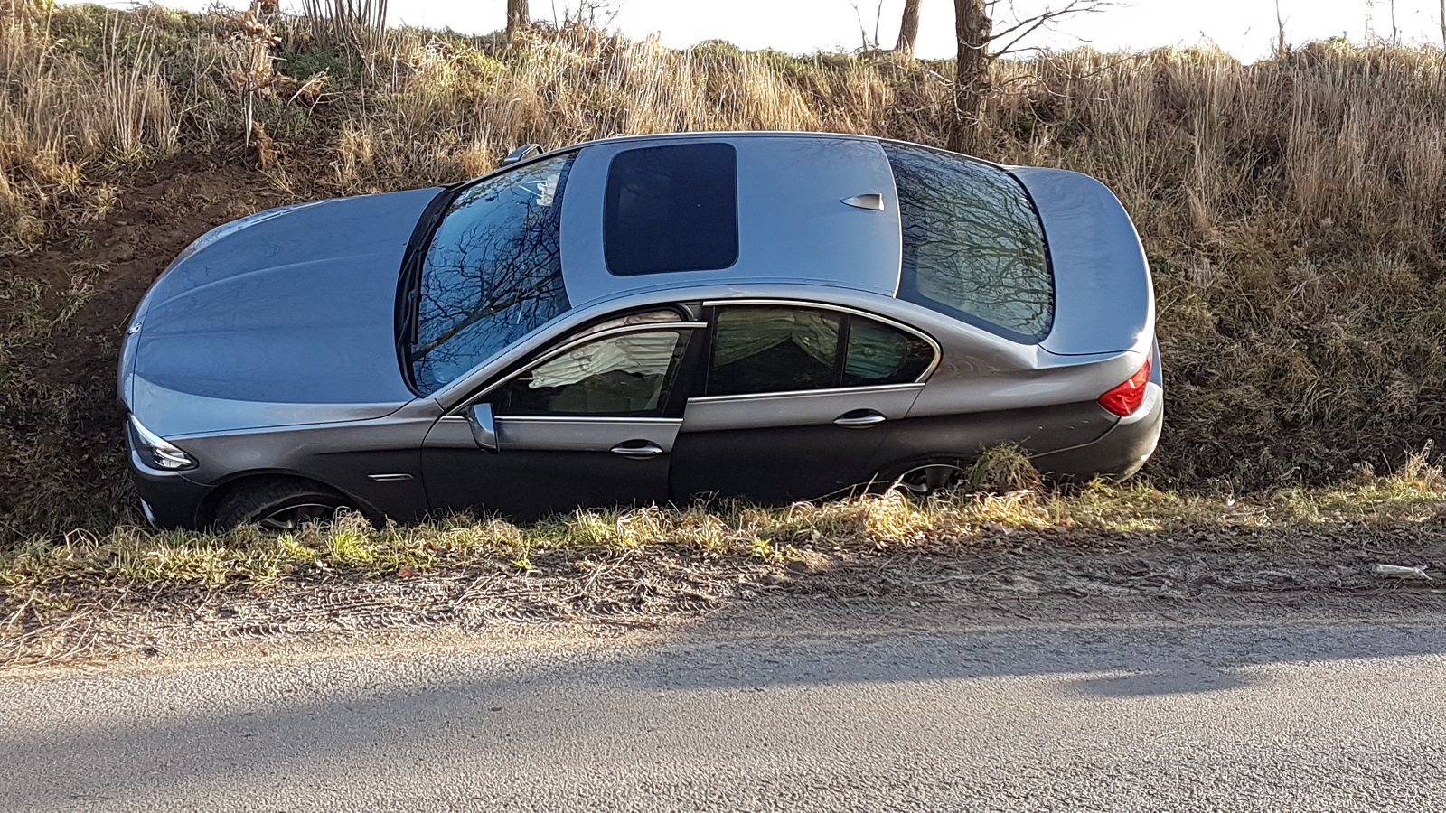 Funkcjonariusze w trakcie realizowanych działań zauważyli stojący porzucony na poboczu pojazd marki BMW 5, w którym nie było żadnych osób. W toku realizowanych czynności stwierdzono, że kierujący prawdopodobnie wpadł w poślizg, wypadł z zakrętu i wylądował na poboczu. W wyniku kontroli legalności pochodzenia pojazdu, okazało się, że auto zostało skradzione na terytorium RFN. Samochód został zabezpieczony, a następnie przekazany funkcjonariuszom Policji z KP Pieńsk. Wartość rynkowa odzyskanego pojazdu wynosi 80.000 zł.