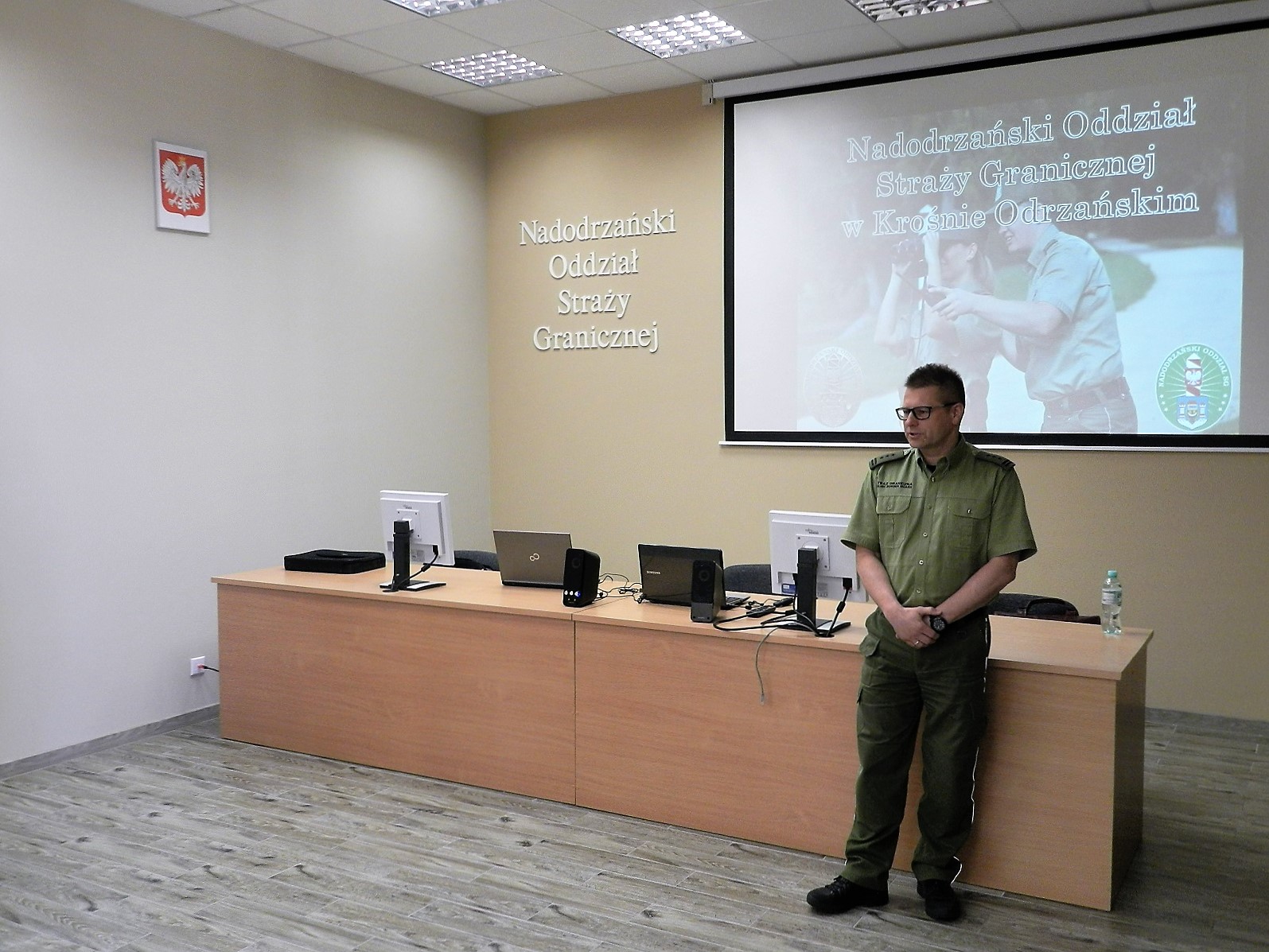 Gości przywitał Zastępca Komendanta Nadodrzańskiego Oddziału Straży Granicznej płk SG Tomasz Michalski. Delegacji towarzyszyli naczelnicy Wydziału Analiz, Informacji i Współpracy Międzynarodowej ppłk SG Danuta Łazarczyk i Wydziału Granicznego ppłk SG Dariusz Wyrwał.
