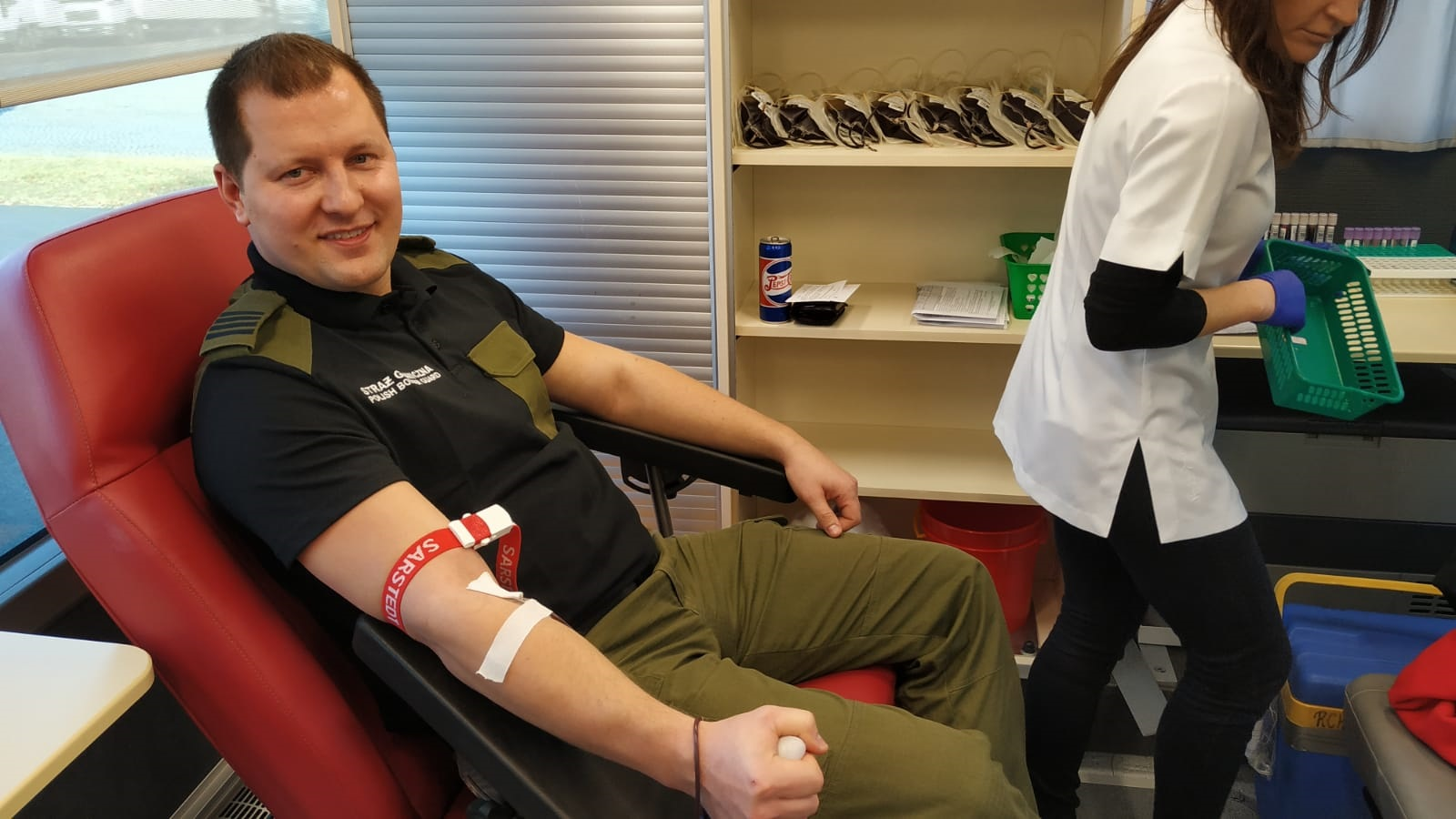 Dzisiejszy punkt pobierania krwi w Nadodrzańskim Oddziale SG zorganizował personel medyczny z Regionalnego Centrum Krwiodawstwa i Krwiolecznictwa w Zielonej Górze.