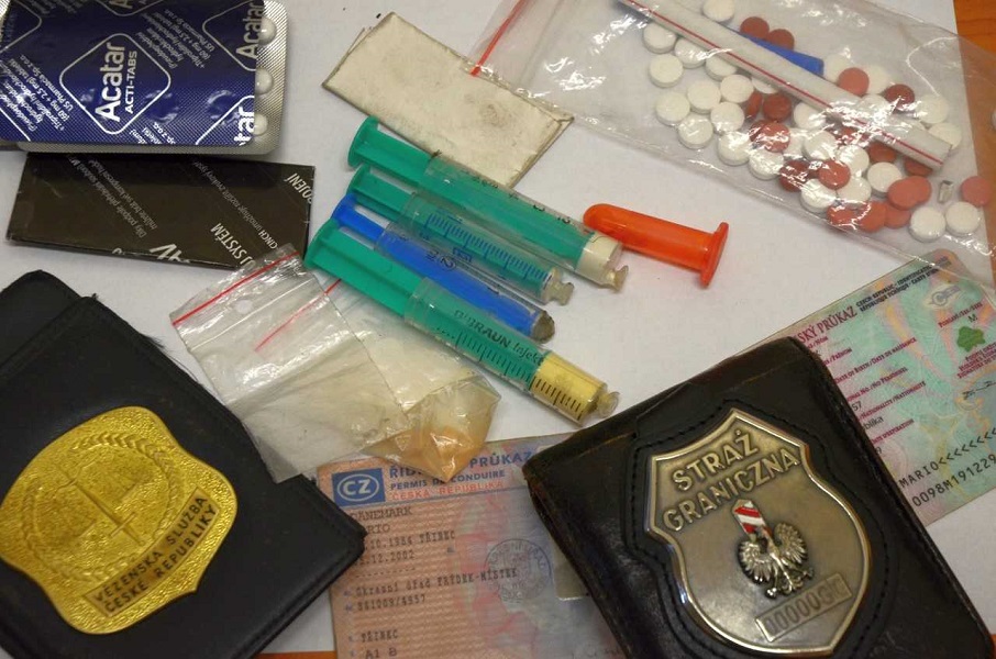 Ponieważ zdjęcie w dokumencie różniło się od wizerunku kierowcy, funkcjonariusze SG postanowili dokładnie sprawdzić dokument. W wyniku dodatkowych ustaleń stwierdzono, iż dokument okazany przez kierującego jest autentyczny ale figuruje jako utracony. 35-latek powiedział, że znalazł go około 2 lat temu i nikomu tego nie zgłosił. Posługiwał się znalezionym dokumentem, gdyż sam ma zatrzymane prawo jazdy. Następnie wręczył funkcjonariuszom do kontroli swój własny dowód osobisty wydany przez władze Republiki Czeskiej. Obywatel Czech został zatrzymany za posługiwanie się nie swoim dokumentem. Jednocześnie funkcjonariusze Straży Granicznej zauważyli w jego samochodzie woreczek strunowy z białym proszkiem. Okazało się, że Czech przewoził również strzykawki z żółtym proszkiem, różnokolorowe tabletki a także biały proszek zawinięty w papierki. W aucie funkcjonariusze odnaleźli ponadto prawo jazdy z danymi zatrzymanego Czecha, które także zgłoszone zostało jako utracone. Funkcjonariusze SG za pomocą testera narkotykowego ustalili, że będące w posiadaniu obywatele Czech substancje odurzające to amfetamina, ecstasy i metamfetamina.