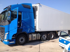 Funkcjonariusze polsko-niemieckiego patrolu pełniąc służbę na autostradzie BAB 12, po stronie niemieckiej, skierowali do kontroli samochód ciężarowy marki Volvo wraz z naczepą. Pojazd posiadał litewskie tablice rejestracyjne natomiast chłodnia duńskie. Kierowcą pojazdu okazał się 32-letni obywatel Litwy. Funkcjonariusze po sprawdzeniu zestawu pojazdów w dostępnych bazach teleinformatycznych ustalili, że został on skradziony na terytorium Danii wraz z załadowanym towarem a jego wartość oszacowano na 115 000 €. Kierowca został zatrzymany a pojazd z naczepą zabezpieczony. Dalsze czynności w sprawie prowadzi Policja Federalna Niemiec.