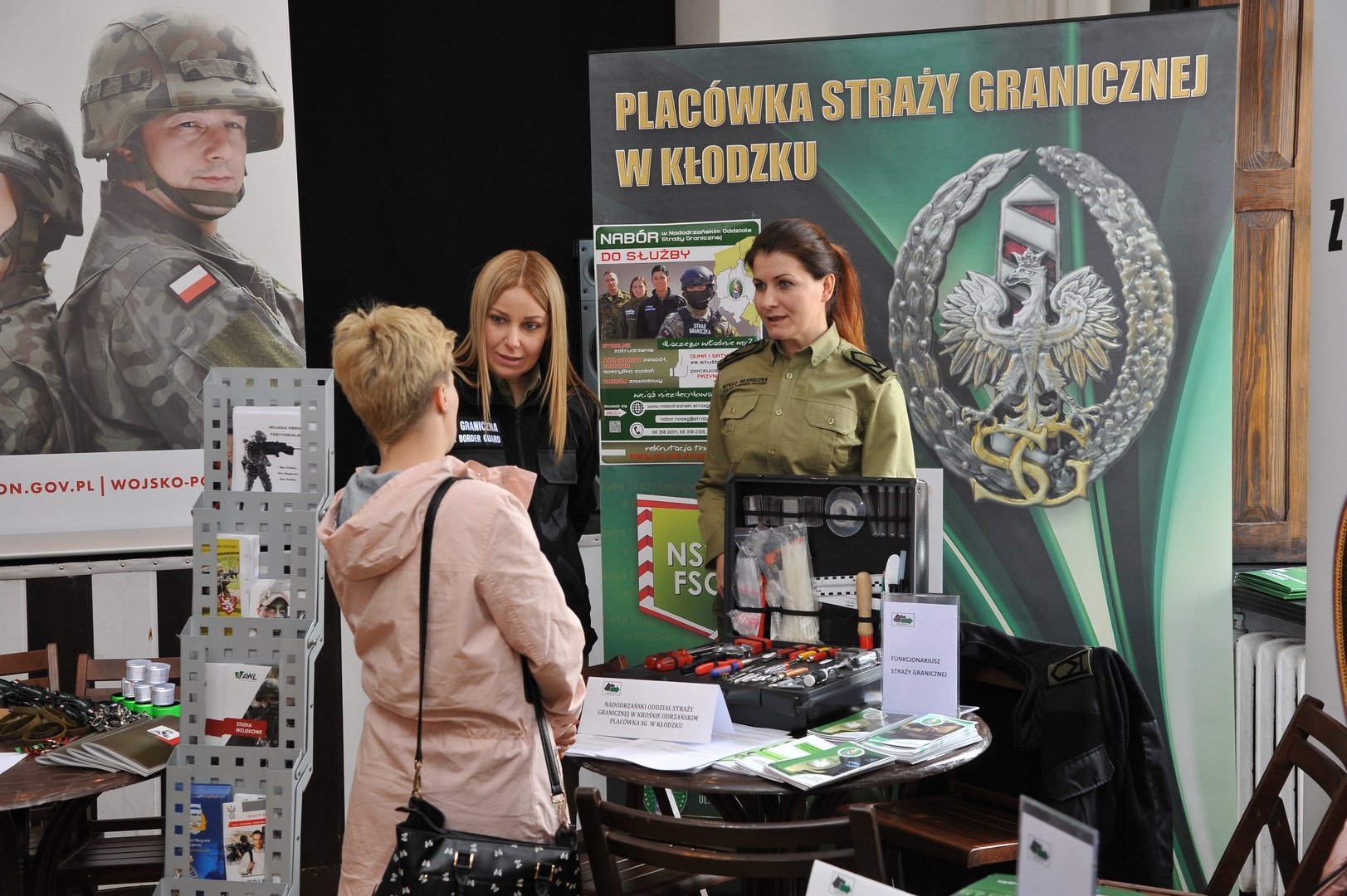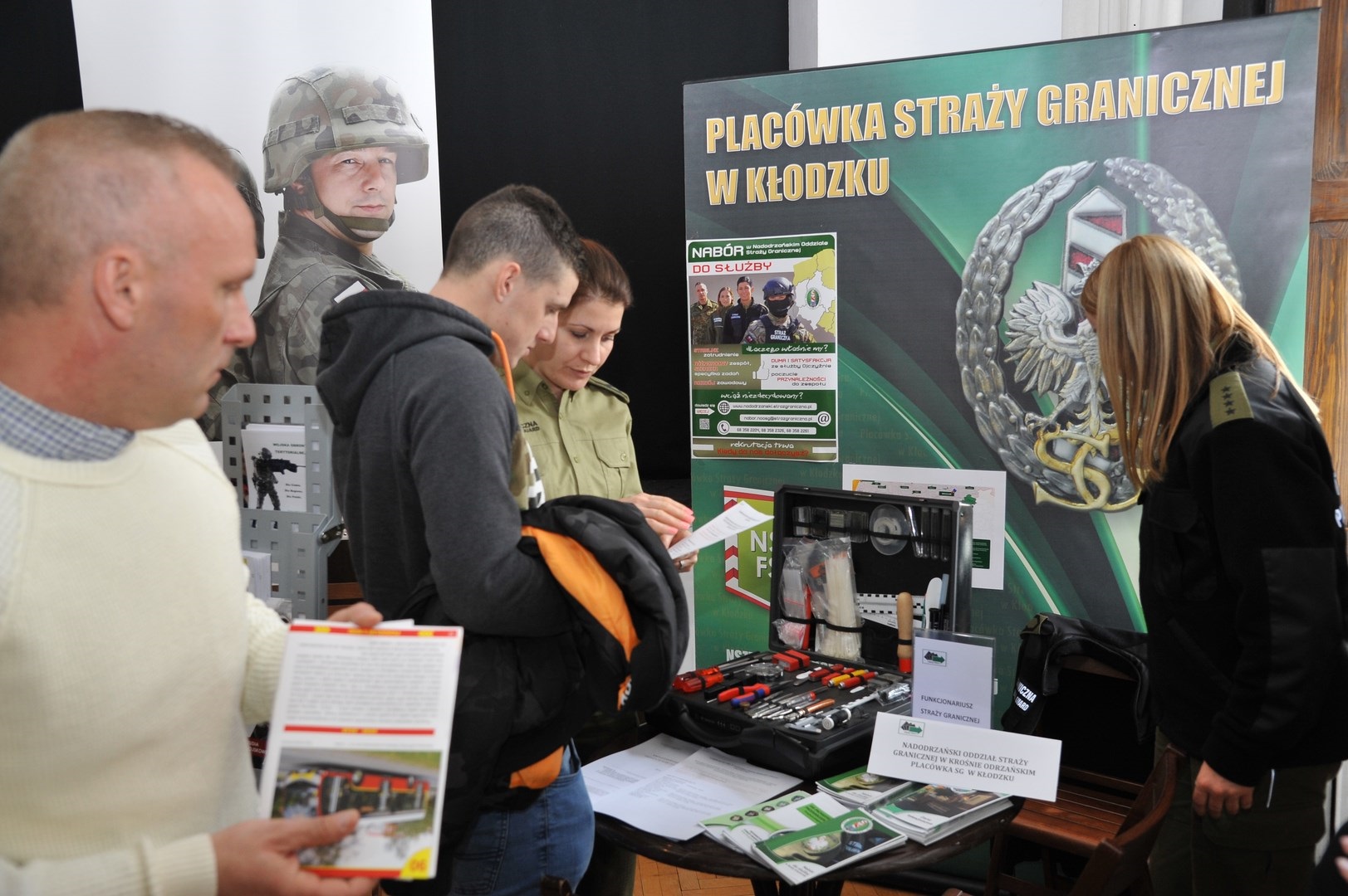 Tegoroczne Targi Pracy odbyły się w Kłodzkim Centrum Kultury Sportu i Rekreacji. Adresowane były przede wszystkim do młodzieży ostatnich klas szkół ponadgimnazjalnych, osób poszukujących pracy lub planujących jej zmianę oraz do pracodawców. Swoje oferty przedstawiły lokalne firmy, instytucje publiczne oraz służby mundurowe, wśród nich Straż Graniczna. Funkcjonariusze z placówki w Kłodzku przygotowali stoisko informacyjne, na którym opowiadali o procesie rekrutacji do służby, warunkach jakie należy spełnić oraz jak wygląda służba w Straży Granicznej. Odwiedzający targi z dużym zainteresowaniem poznawali zadania SG, warunki przyjęcia do służby i związane z tym procedury kwalifikacyjne.