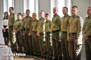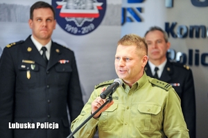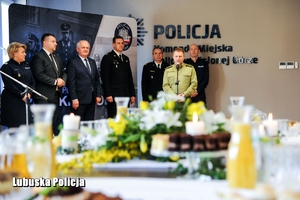 Wojewoda Lubuski odczytał list od Ministra Spraw Wewnętrznych i Administracji Joachima Brudzińskiego. „ Podczas świątecznych dni, spędzanych w gronie najbliższych, szczególnie doceniamy spokój i poczucie bezpieczeństwa. To zasługa Wasza, Funkcjonariuszek i Funkcjonariuszy, którzy na co dzień czuwacie nad utrzymaniem porządku w naszych miastach i wsiach. Część z Was podczas najbliższych dni będzie także dbać o bezpieczeństwo tych, którzy będą świętować. Taka jest specyfika Waszej służby. Jako Minister Spraw Wewnętrznych i Administracji jestem Wam głęboko wdzięczny za poświęcenie i trud, jaki codziennie wkładacie w wypełnianie swoich obowiązków. Dzięki Waszemu zaangażowaniu, Polacy ze spokojem i w poczuciu bezpieczeństwa będą przeżywali nadchodzącą Wielkanoc. Dziękuję Wam za to, że zawsze spieszycie z pomocą tym, którzy jej potrzebują” – napisał Minister Brudziński.