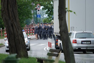 Po jej zakończeniu poczet sztandarowy, kompania honorowa wraz z Orkiestrą Reprezentacyjną Wojsk Lądowych z Poznania oraz pododdziały funkcjonariuszy uroczyście przemaszerowały ulicami Krosna Odrzańskiego na plac Komendy Nadodrzańskiego Oddziału SG gdzie podniesiono flagę państwową i odegrano hymn państwowy. Mazurka Dąbrowskiego.