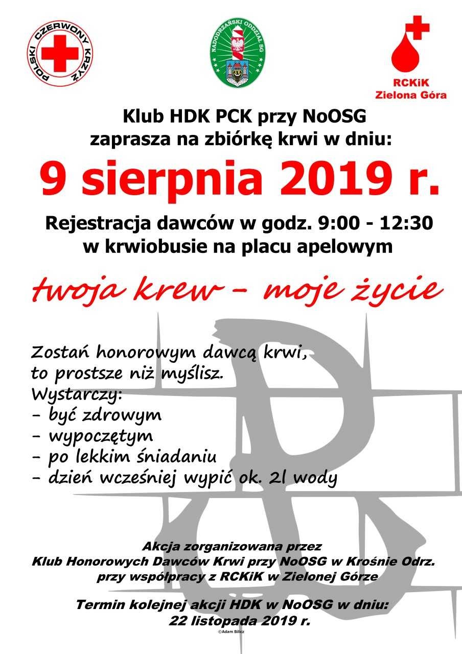 Właśnie dlatego w piątek 9 sierpnia już po raz trzeci w tym roku, na placu apelowym Nadodrzańskiego Oddziału Straży Granicznej w Krośnie Odrzańskim stanie Mobilny Punkt Poboru Krwi Regionalnego Centrum Krwiodawstwa i Krwiolecznictwa w Zielonej Górze.