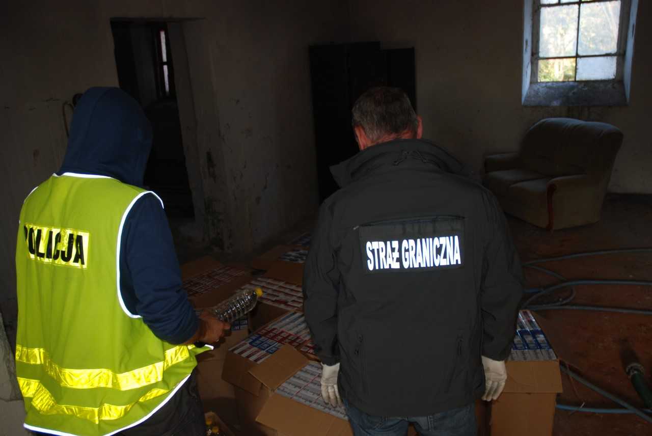 Podczas przeszukania samochodu, a następnie pomieszczeń mieszkalnych i gospodarczych należących do zatrzymanego, funkcjonariusze ujawnili 140 tys. paczek papierosów, ponad 26 kg tytoniu oraz blisko 40 litrów spirytusu bez polskich znaków akcyzy.