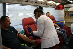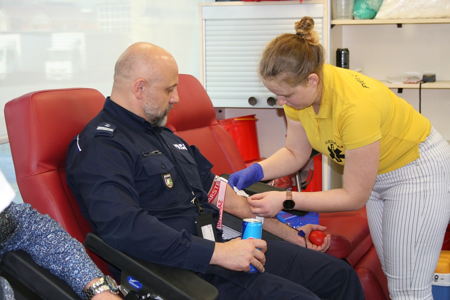 Dzisiejszy punkt pobierania krwi w Nadodrzańskim Oddziale SG zorganizował personel medyczny z Regionalnego Centrum Krwiodawstwa i Krwiolecznictwa w Zielonej Górze. Spośród 31 chętnych dawców do oddania krwi zakwalifikowało się 29. Łącznie podczas dzisiejszej zbiórki zebranych zostało ponad 13 litrów krwi.