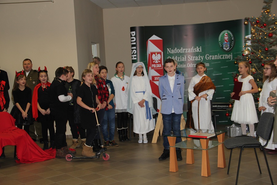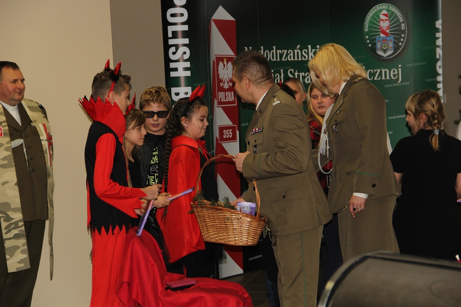 Spotkanie opłatkowe w Komendzie Oddziału uświetniło przedstawienia jasełkowego w wykonaniu uczniów Zespołu Szkół Samorządowych w Dychowie. W podziękowaniu za przepiękny występ dzieci otrzymały podarunki.