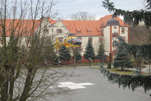 Już nie pierwszy raz na terenie Komendy NoOSG lądował helikopter wraz z zespołem ratowników. Dzięki współpracy i wyznaczonemu lądowisku pomoc zawsze przychodzi na czas.