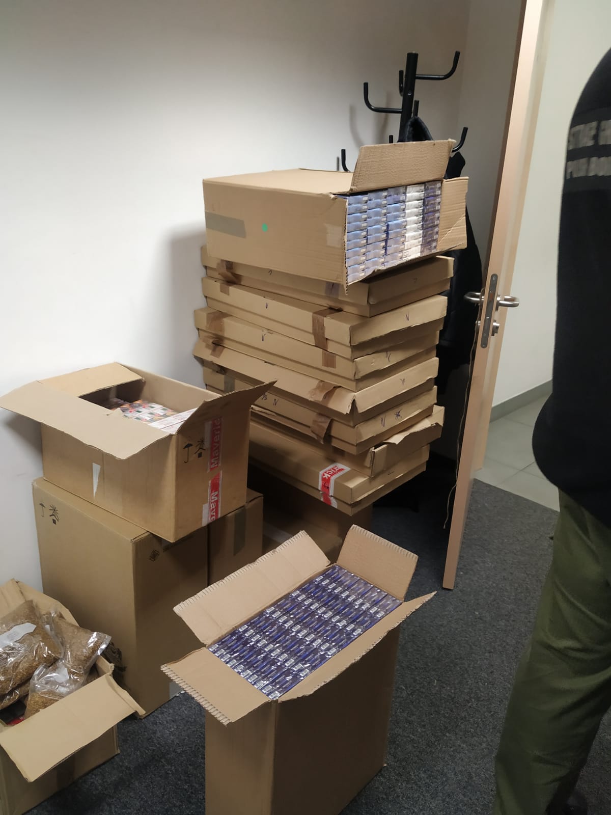 31 marca funkcjonariusze z Placówki Straży Granicznej w Poznaniu – Ławicy zatrzymali do kontroli samochód osobowy, którym kierował 54-letni mieszkaniec Poznania. W wyniku kontroli funkcjonariusze SG ujawnili w samochodzie ponad 60 kg krajanki tytoniowej bez polskich znaków akcyzy skarbowej. Również w trakcie przeszukania wynajmowanego przez mężczyznę garażu funkcjonariusze ujawnili kolejne, ważące łącznie ponad 446 kilogramów worki z krajanką tytoniową, także bez polskich znaków akcyzy skarbowej. W garażu mężczyzna przechowywał również 7612 paczek papierosów z zagranicznymi znakami akcyzy skarbowej (152.240 szt.).