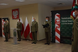 Podczas uroczystości odczytano również rozkaz Komendanta Nadodrzańskiego Oddziału Straży Granicznej o powierzeniu obowiązków na stanowisku Komendanta Placówki Straży Granicznej mjr. SG Pawłowi Onichimiukowi.