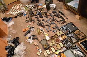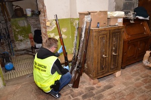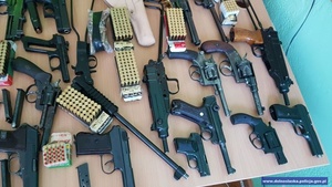 Na terenie powiatu kłodzkiego służby zatrzymały dwóch mężczyzn w wieku 30 i 64 lat. W wyniku przeszukania posesji, funkcjonariusze ujawnili sprzęt służący do produkcji narkotyków oraz zabezpieczyli ponad 6 kg marihuany. Dodatkowo na miejscu zabezpieczono cały arsenał broni składający się z 39 sztuk broni palnej długiej i krótkiej różnego rodzaju i kalibru. Ujawniono również ponad 3 tysiące sztuk amunicji oraz pół kilograma czarnego prochu. Na miejscu zabezpieczono również maszynki do produkcji amunicji oraz 55 szabli, a także pieniądze w różnych walutach w łącznej kwocie około 30 tysięcy złotych.