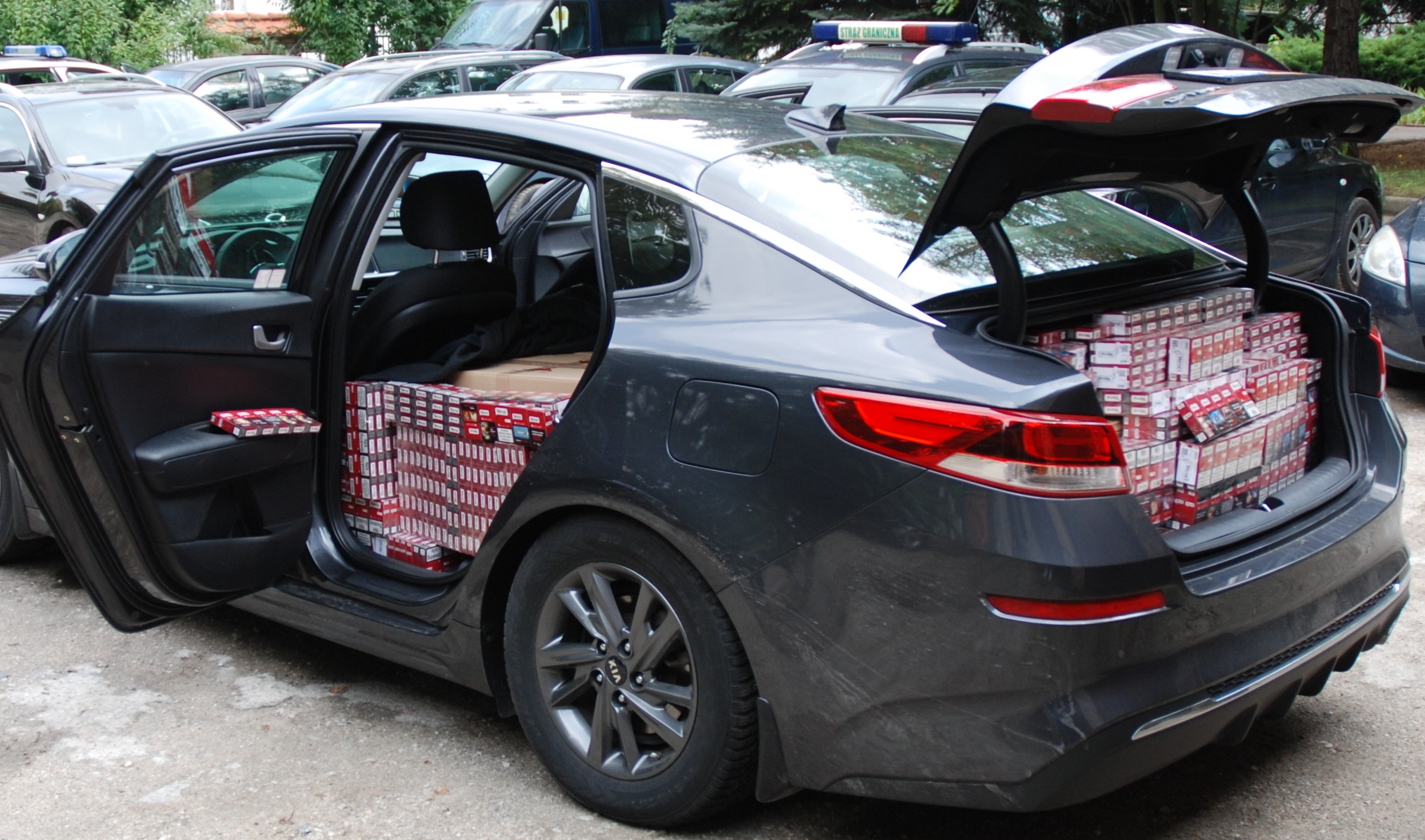 Funkcjonariusze Straży Granicznej z Legnicy skontrolowali na autostradzie A-4 samochód osobowy marki Kia Optima jadący w kierunku Niemiec. W pojeździe na tylnej kanapie oraz w bagażniku funkcjonariusze ujawnili 9 130 paczek papierosów (182,6 tysiąca sztuk) znanych marek bez polskich znaków skarbowych akcyzy. Opakowania posiadały niemieckie napisy i były przygotowane do sprzedaży właśnie na terytorium Niemiec. Zabezpieczony przez legnickich funkcjonariuszy towar oszacowany został na prawie 129 tysięcy złotych. 35-letni mieszkaniec województwa mazowieckiego usłyszał już zarzuty przewożenia wyrobów akcyzowych stanowiących przedmiot czynu zabronionego.