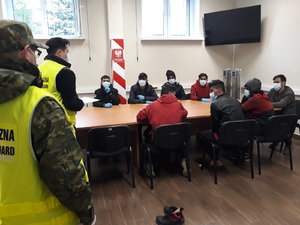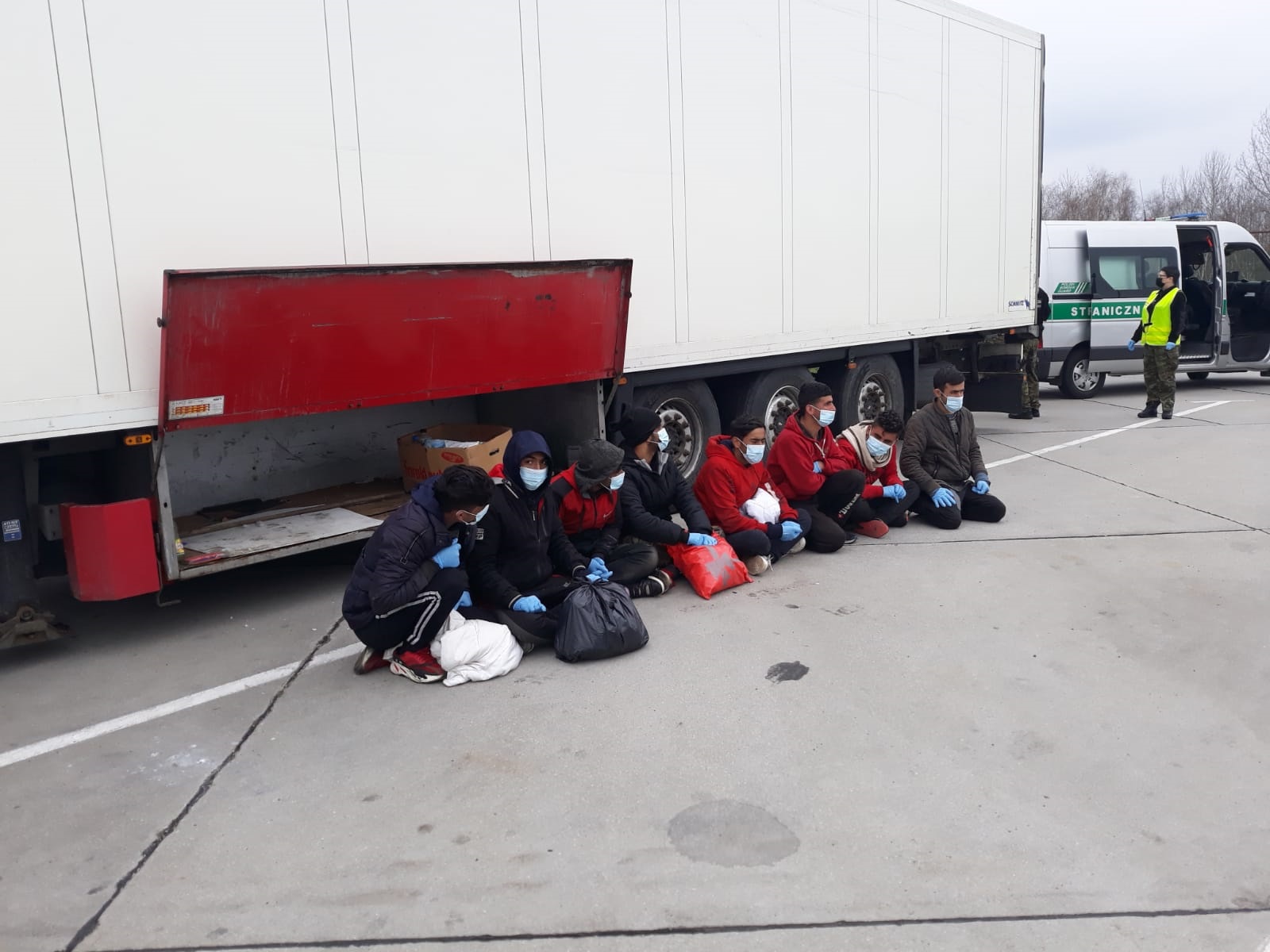 W sobotnie popołudnie kierowca rumuńskiej ciężarówki zaniepokojony dobiegającymi z naczepy odgłosami pukania i nawoływania, zaalarmował patrol Straży Granicznej realizujący zadania związane z kontrolą sanitarną w rejonie byłego przejścia granicznego w Olszynie. Patrol natychmiast udał się do ciężarówki, gdzie w przestrzeni ładunkowej i w skrzyni narzędziowej ujawniono 8 osób. Cudzoziemcy nie posiadali przy sobie dokumentów uprawniających ich do pobytu na terytorium Polski. Deklarowali, iż pochodzą z Afganistanu i nie mają więcej niż 16 lat. Wszyscy zostali zatrzymani. Po przeprowadzeniu badania lekarskiego w celu ustalenia wieku zatrzymanych osób okazało się, że wszyscy są pełnoletni. W trakcie dalszych czynności wyjaśniających potwierdzono afgańskie obywatelstwo mężczyzn oraz ich dane osobowe. Okazało się także, są to mężczyźni w wieku 20-25 lat, którzy już wcześniej, na terytorium Rumunii, złożyli wnioski o ochronę międzynarodową.