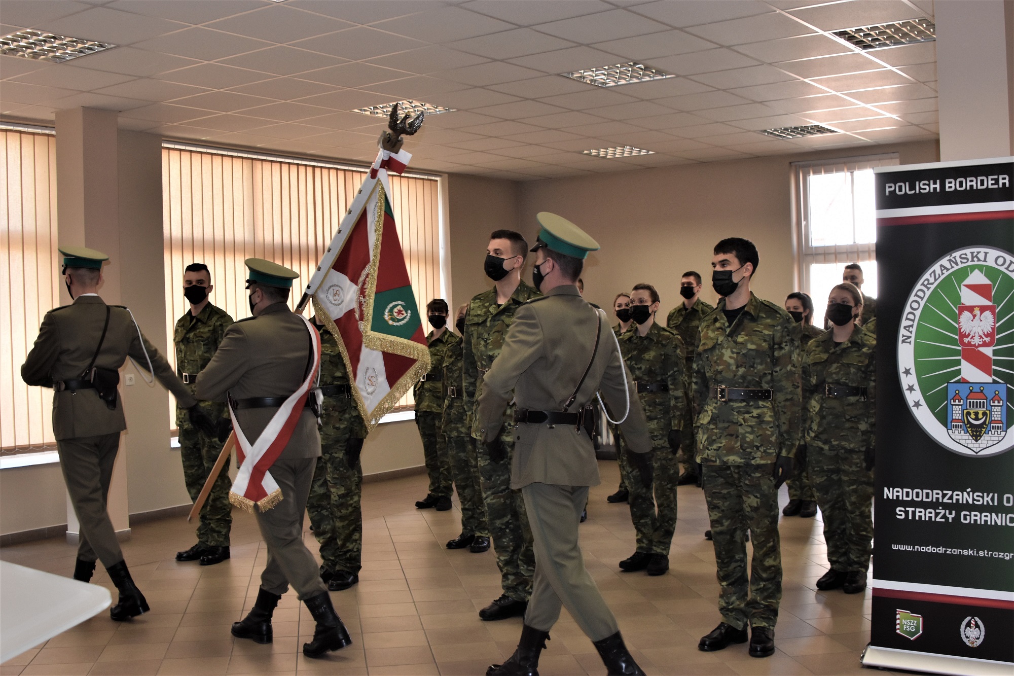 Uroczysta zbiórka tradycyjnie rozpoczęła się od wprowadzenia pocztu sztandarowego, złożenia meldunku przez dowódcę oraz odegrania hymnu państwowego. Ślubowanie przyjął zastępca Komendanta Nadodrzańskiego Oddziału Straży Granicznej płk SG Paweł Maziec.