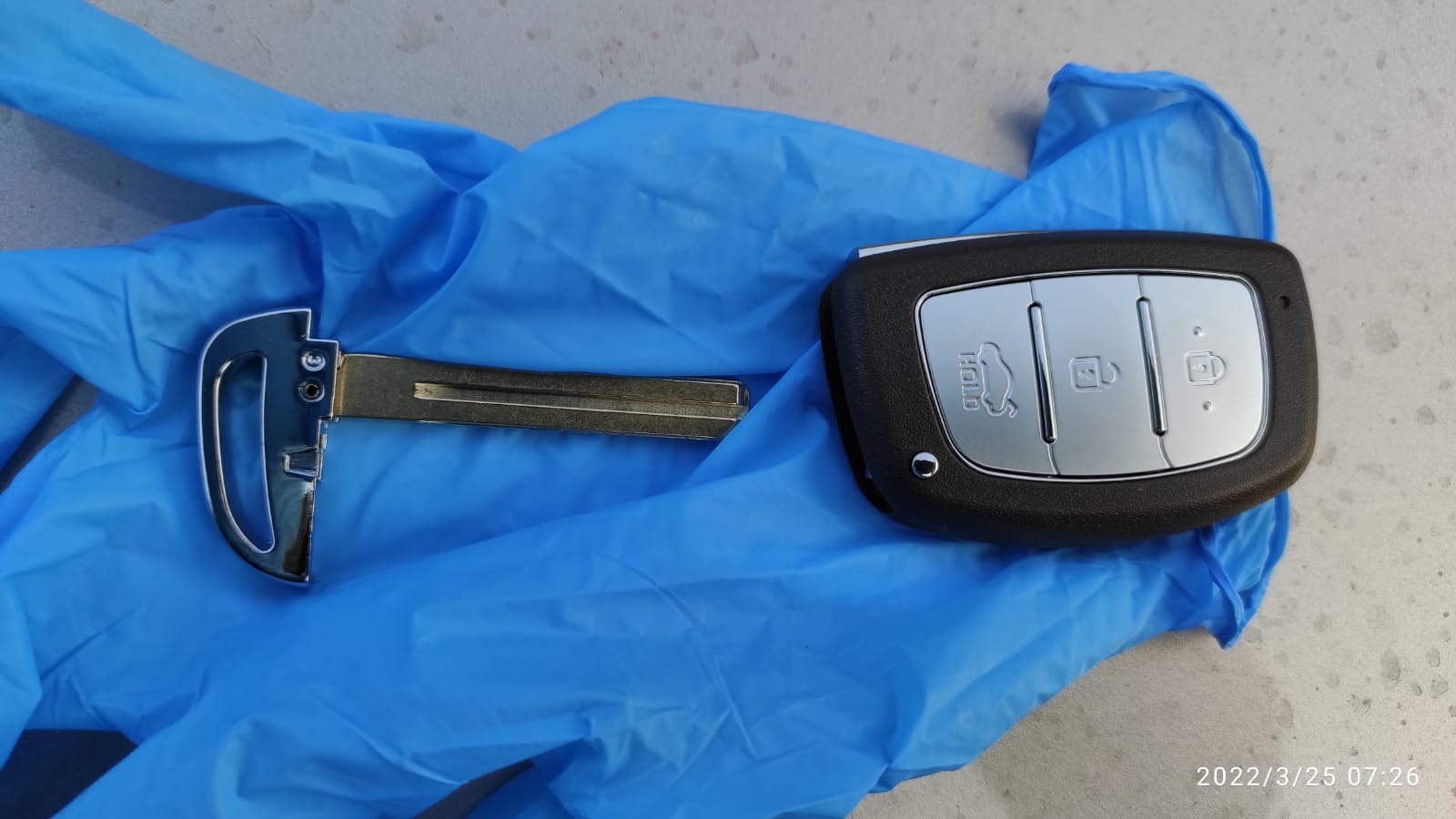 Podczas kontroli pojazdu funkcjonariusze ujawnili w bagażniku auta oryginalne niemieckie tablice należące do hyundaia. Funkcjonariusze zwrócili również uwagę, iż stacyjka pojazdu została uszkodzona, a umieszczony w niej łamak posłużył do uruchomienia pojazdu. Zniszczona i przerobiona została w bardzo widoczny sposób naklejka rejestracyjna zamieszczona na przedniej szybie pojazdu, na której po wcześniejszym odklejeniu, sprawca kradzieży wpisał odręcznie nowy numer rejestracyjny.