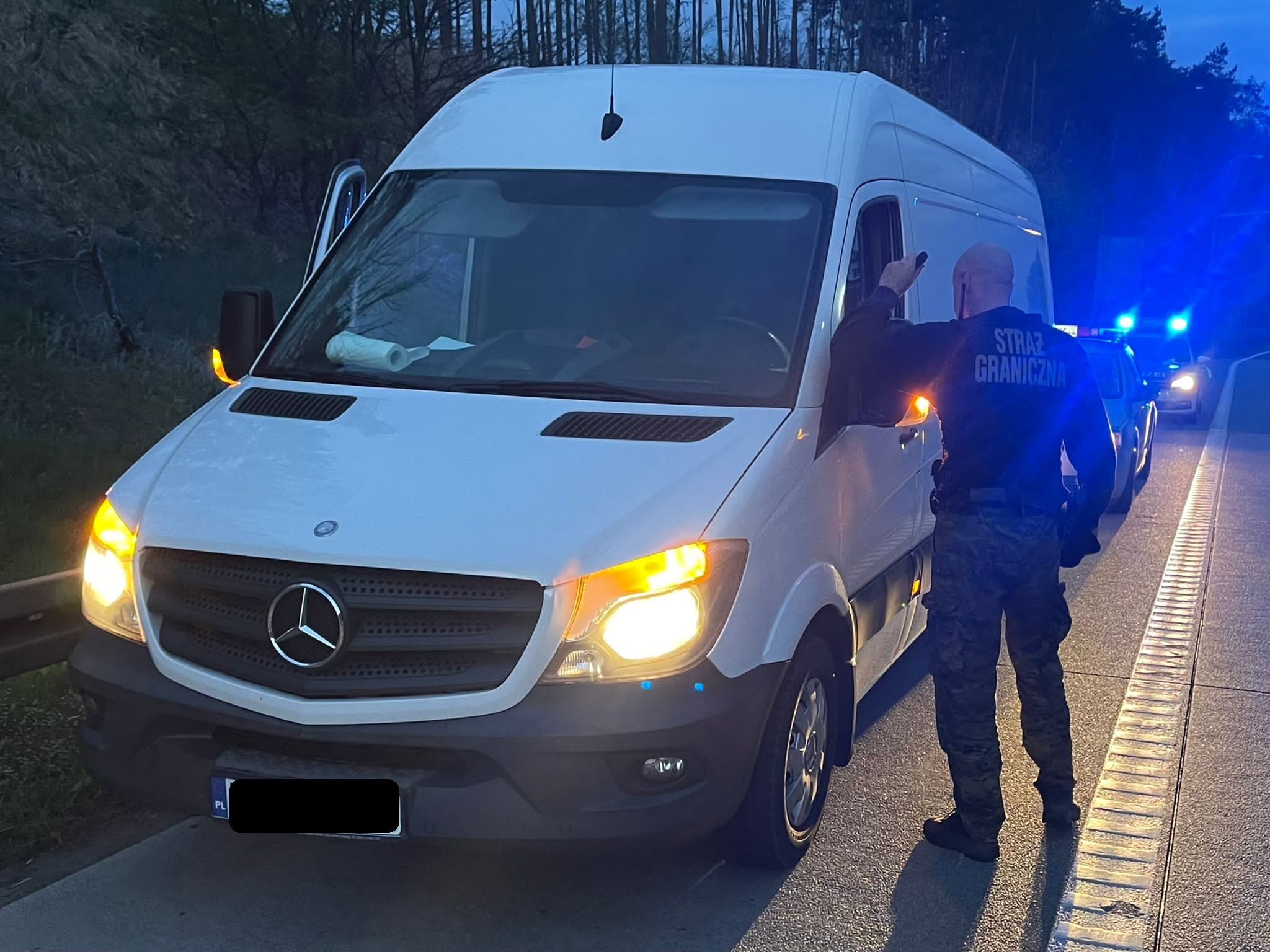 Tej samej nocy, pół godziny później funkcjonariusze ze Wspólnej Polsko-Niemieckiej Placówki w Świecku zatrzymali do kontroli pojazd dostawczy marki Mercedes Sprinter na polskich numerach rejestracyjnych. Kierowca pojazdu okazał się obywatel naszego kraju. Podczas kontroli pojazdu funkcjonariusze zauważyli, że zamek od strony kierowcy posiada ślady włamania, a silnik jest odpalony za pomocą specjalnego klucza tzw. łamaka. Okazało się także, że założone na busie tablice rejestracyjne należą do innego Mercedesa Sprintera, w dodatku nie są oryginalne ale podrobione.