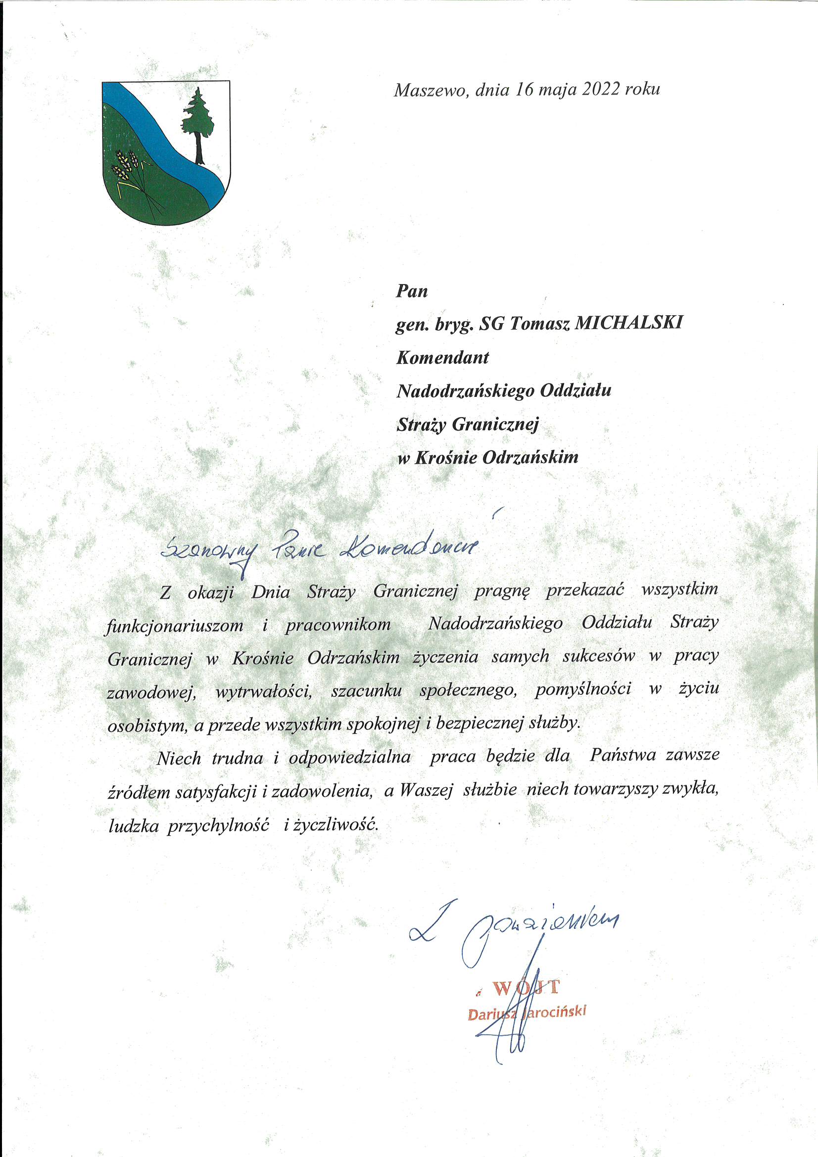 Życzenia skierowane przez Wójta Gminy Maszewo -