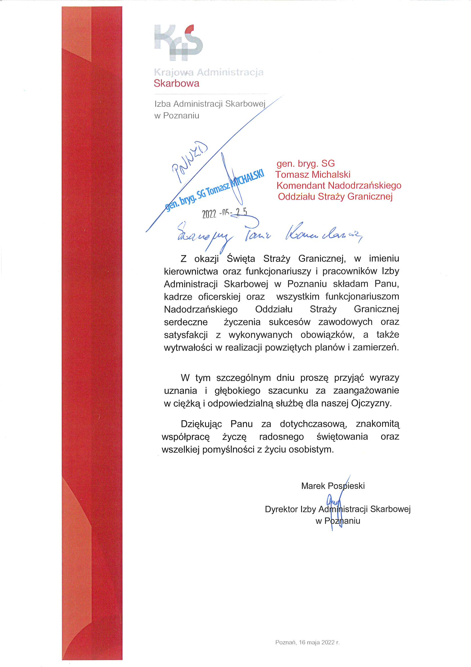 Życzenia skierowane przez Dyrektora Izby Administracji Skarbowej w Poznaniu