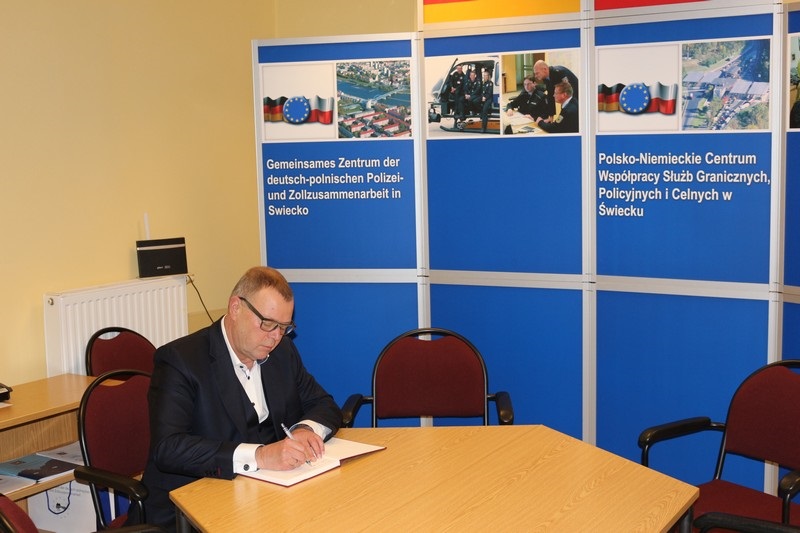 Z roboczą wizytą w Polsko-Niemieckim Centrum Współpracy Służb Granicznych, Policyjnych i Celnych w Świecku gościł 15 listopada Minister Spraw Wewnętrznych i Spraw Komunalnych Kraju Związkowego Brandenburgii Michael Stübgen. Panu ministrowi zaprezentowano między innymi zadania, strukturę, wyzwania a także plany dotyczące przeniesienia siedziby PNCW w Świecku do zupełnie nowych obiektów w Słubicach. Ministra zapoznano również ze sposobem współdziałania służb we wspólnej sali operacyjnej PNCW. Podczas wizyty obecni byli wszyscy kierownicy kontyngentów służb polskich i niemieckich. Stronę polską reprezentował koordynator służb polskich PNCW kierownik kontyngentu polskiej Straży Granicznej st. chor. sztab. SG Sławomir Trzeciak oraz kierownik kontyngentu polskiej policji nadkom. Sylwester Ksiuk.