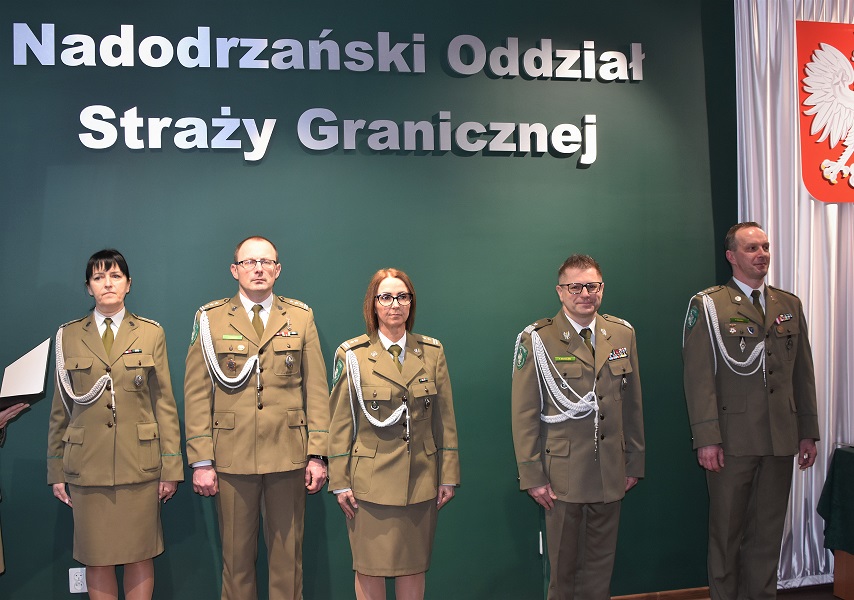 Komendant Nadodrzańskiego Oddziału Straży Granicznej gen. bryg. SG Tomasz Michalski podczas uroczystej zbiórki dokonał dzisiaj (17.02) uroczystego wprowadzenia ppłk. SG Moniki Musielak na stanowisko zastępcy Komendanta NoOSG do spraw granicznych. Po odczytaniu rozkazu Komendanta Głównego Straży Granicznej o powierzeniu obowiązków na tym stanowisku, gen. bryg. SG Tomasz Michalski życzył swojej zastępczyni powodzenia i sukcesów w wykonywaniu nowych zadań służbowych.