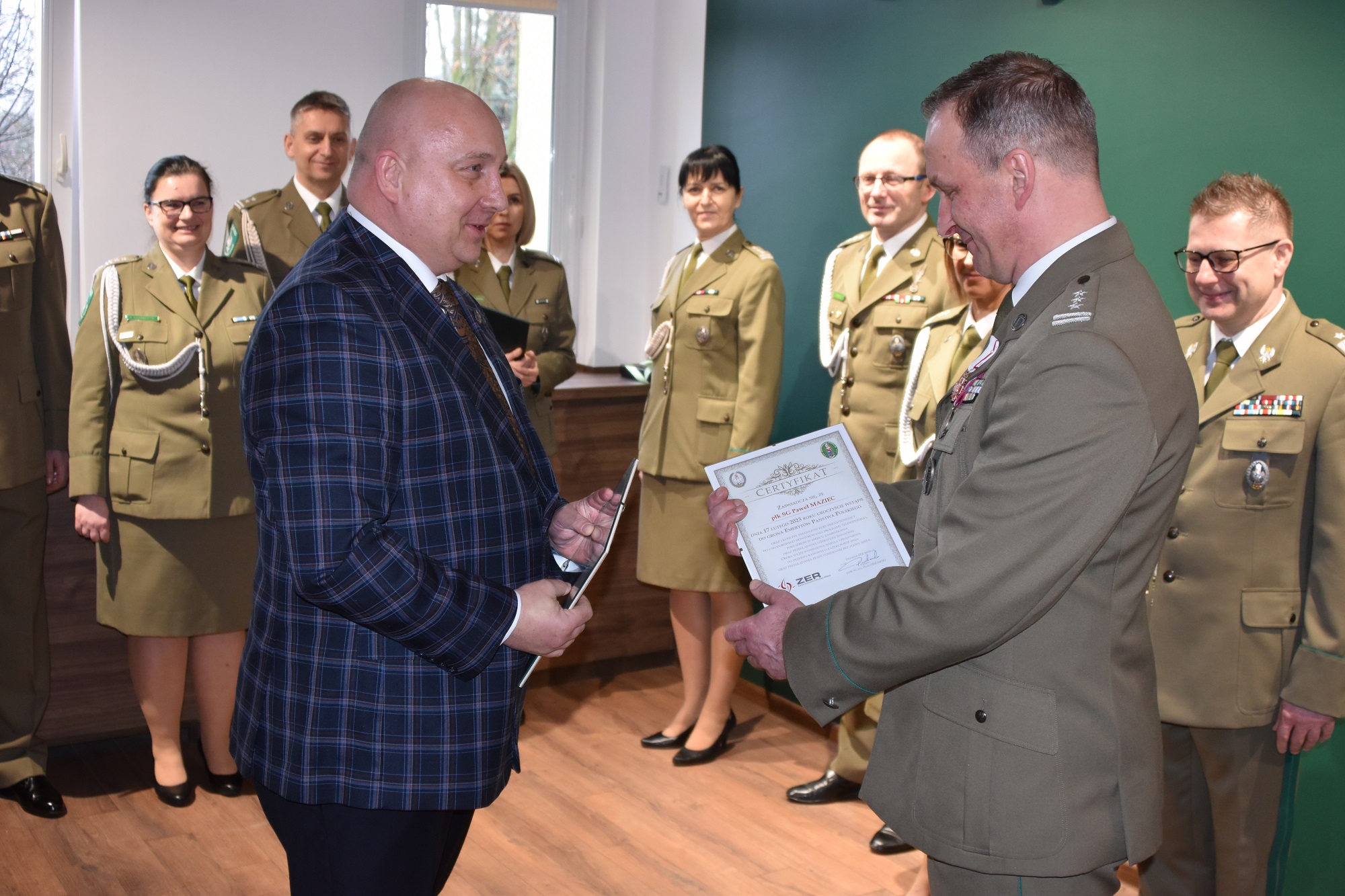 W uroczystości uczestniczyli także, płk SG Adam Kurek zastępca Komendanta Śląskiego Oddziału Straży Granicznej, ppłk SG Danuta Łazarczyk - oficer łącznikowy przy Ambasadzie RP w Berlinie oraz były zastępca Komendanta Ośrodka Szkoleń Specjalistycznych w Lubaniu ppłk SG Piotr Piekarski.